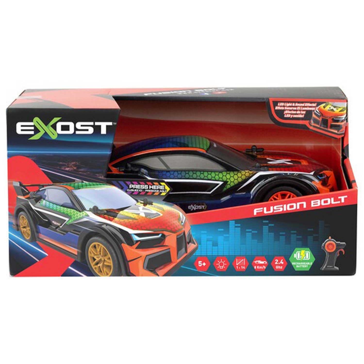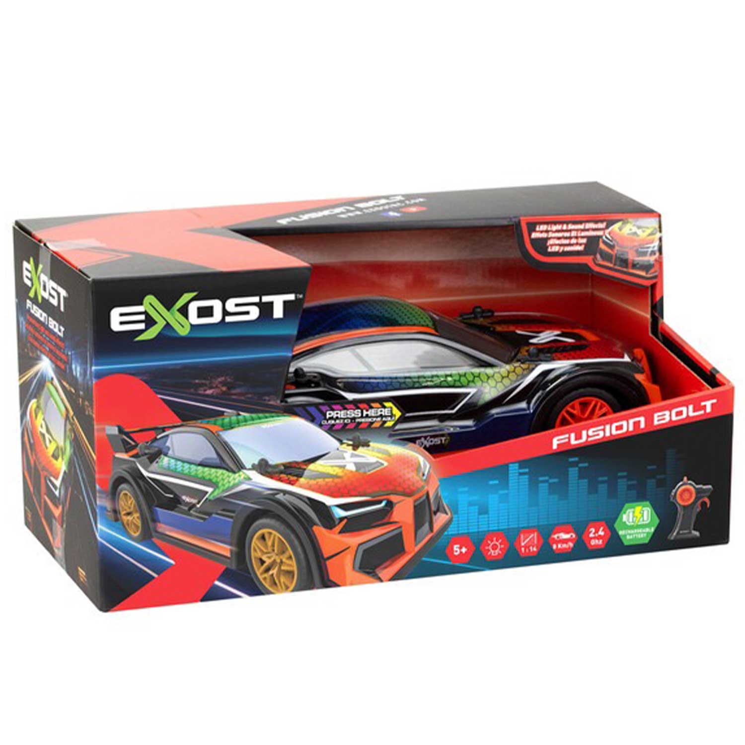 Представляем вам Fusion Bolt от Exost – не просто машинку на радиоуправлении, а билет в мир захватывающих гонок и невероятных трюков! Этот футуристический болид, словно сошедший со страниц фантастического романа, станет лучшим подарком для юных любителей скорости и технологий.