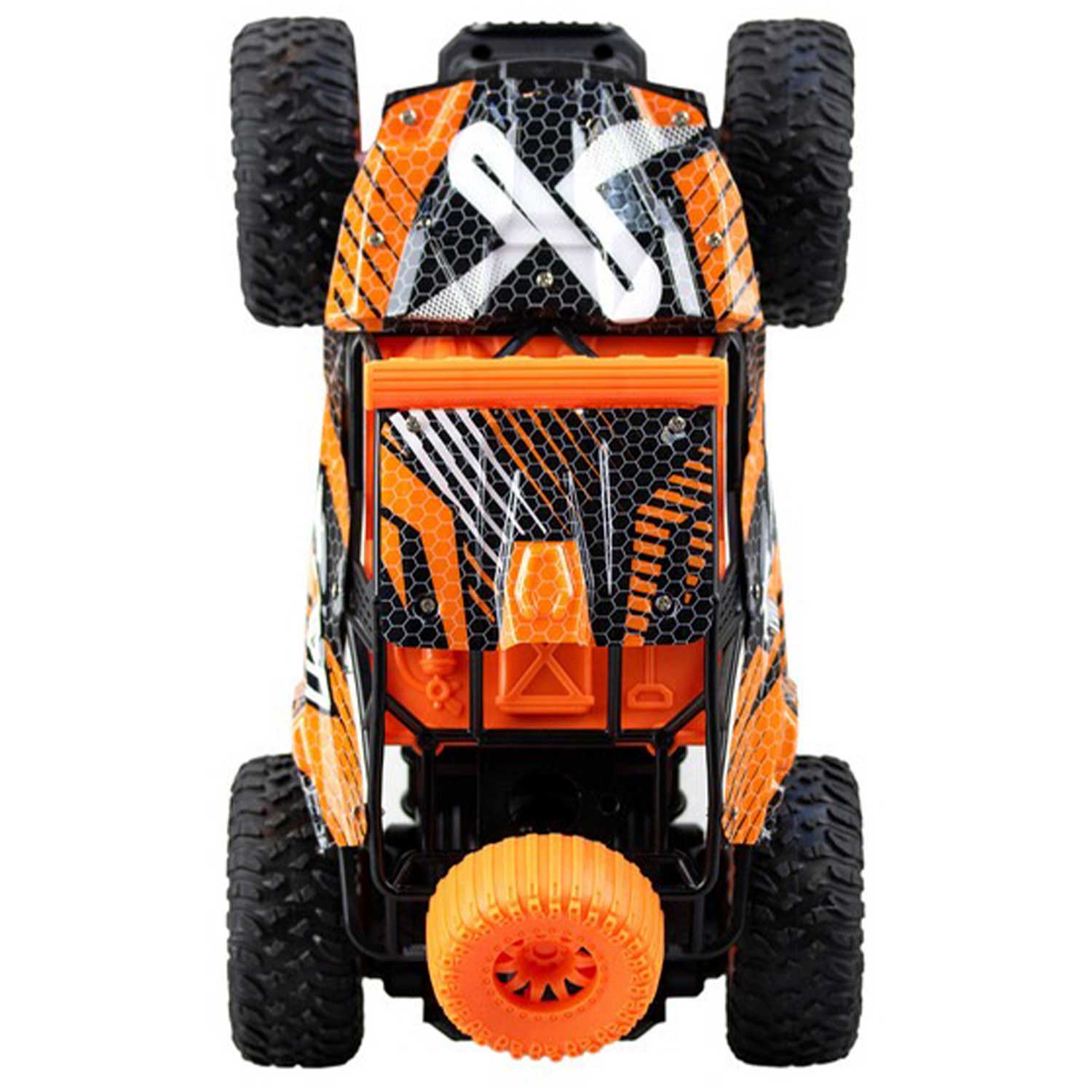 - благодаря своим прочным шинам, машинка может ехать по бездорожью и труднопроходимой местности, преодолевая препятствия на своём пути