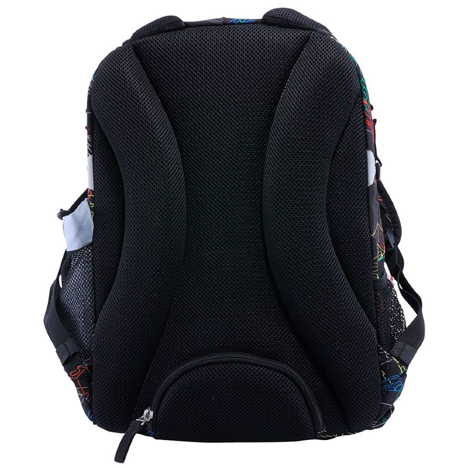 - благодаря особой конструкции спинки рюкзака, спина ребёнка не потеет