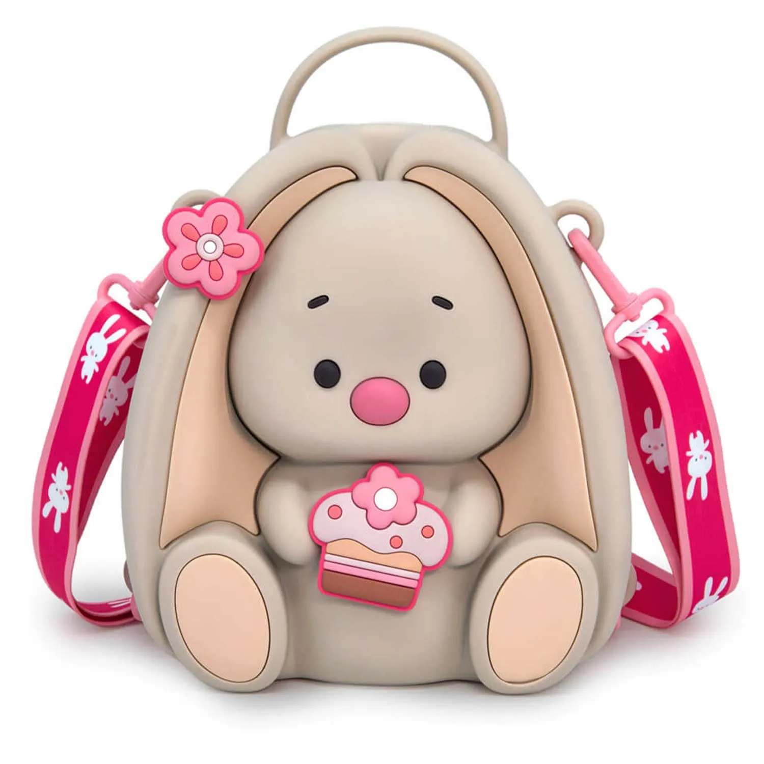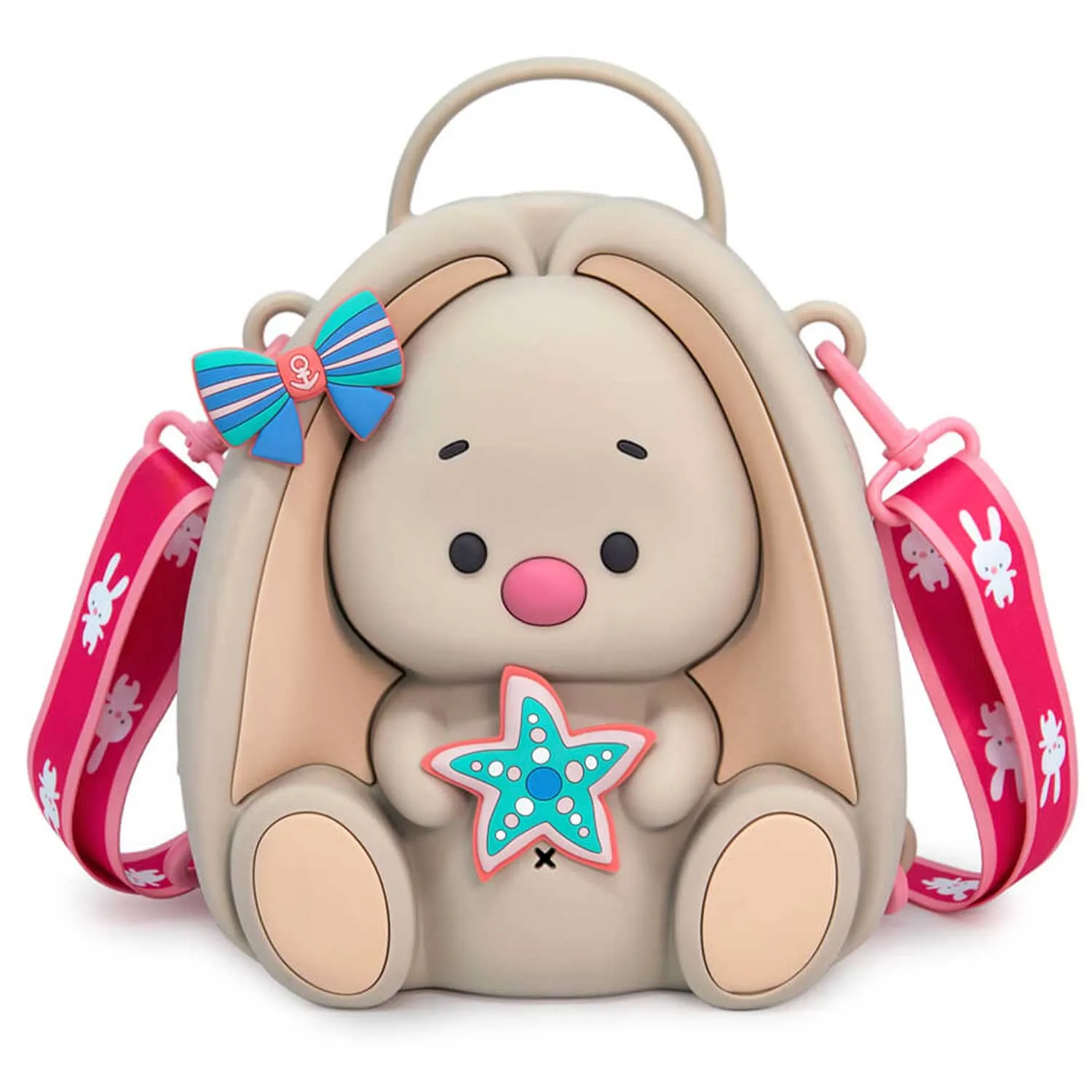 Милый рюкзачок идеальной формы в виде Зайки Ми выполнен из силикона с выпуклыми логотипами Zaika Mi и BUDI BASA.