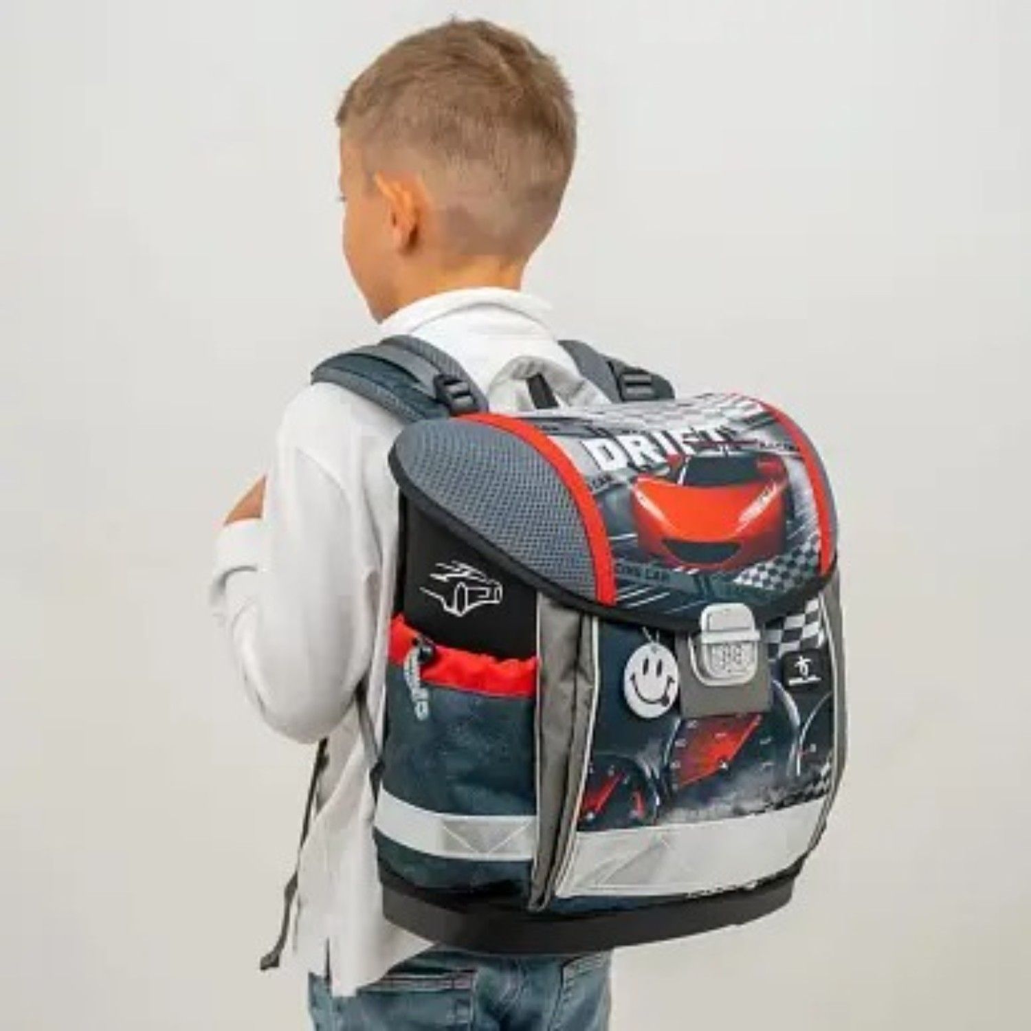 Ранец Belmil CLASSY "Drift" — это надёжный и эргономичный школьный рюкзак, разработанный специально для учеников младших классов. С объёмом 22 литра и весом всего 950 г, он сочетает в себе ортопедическую поддержку, продуманную организацию пространства и стильный дизайн в духе автоспорта.