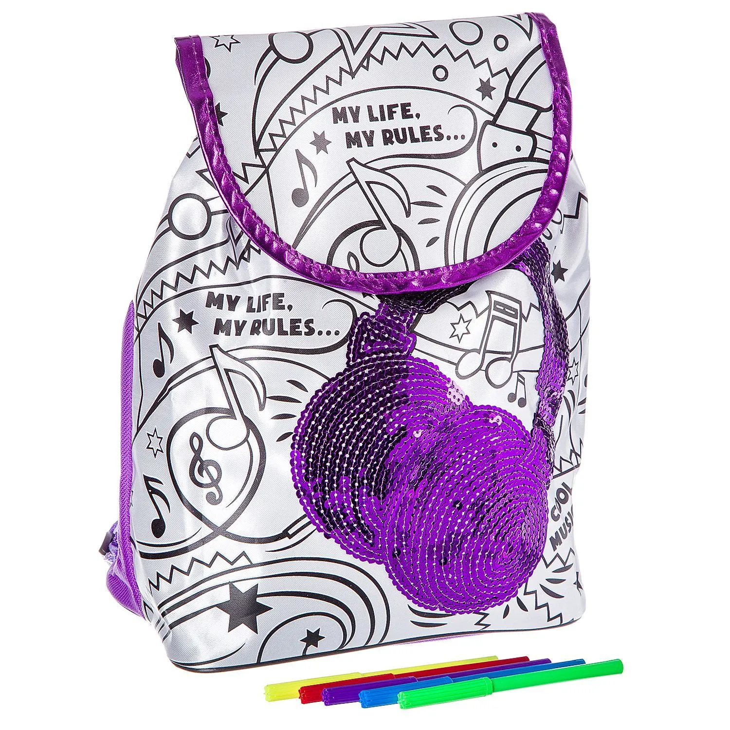 Маленькая леди получит не только красивый рюкзачок, но и набор ярких цветных фломастеров, чтобы раскрасить его так, как хочется.
