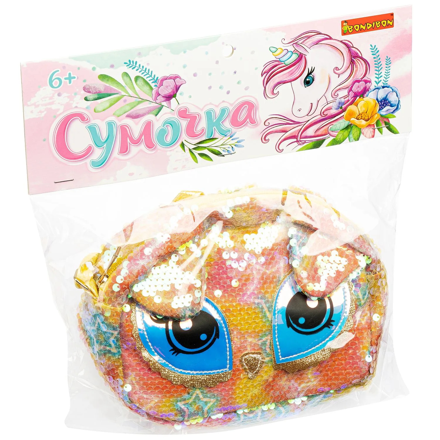 ВВ4915 Сумочка Bondibon, Кошка, с пайетками, 18х16 см.
