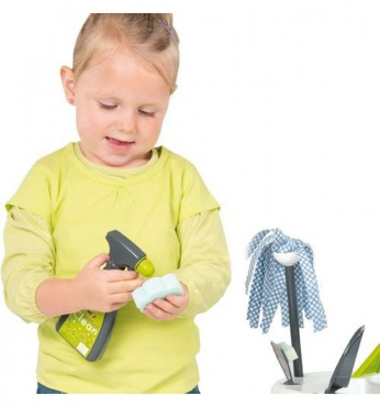 - после уборки все инструменты можно сложить на тележку, каждый на свое место, приучая ребенка к аккуратности и порядку