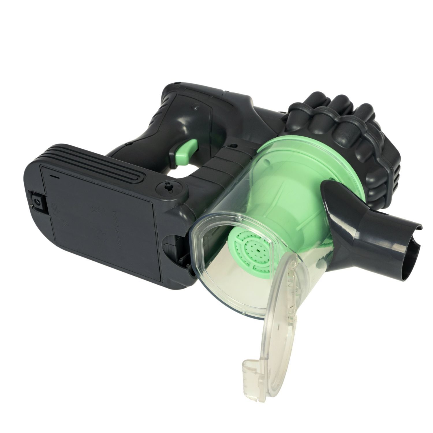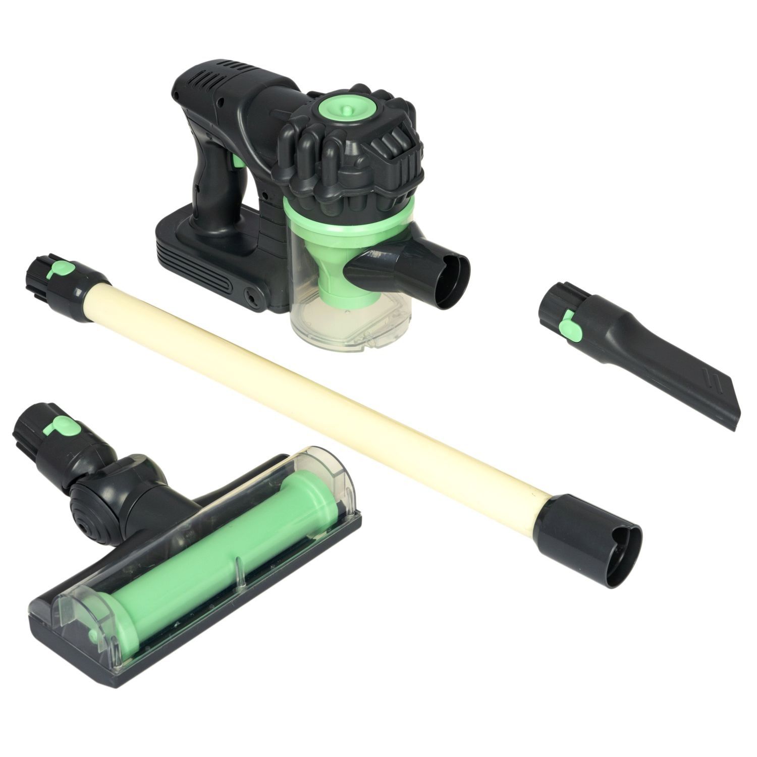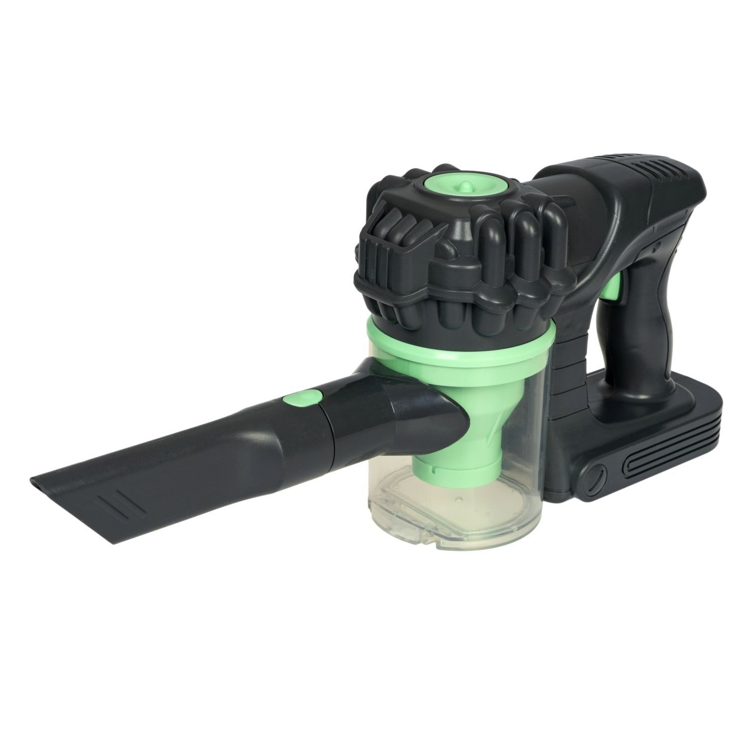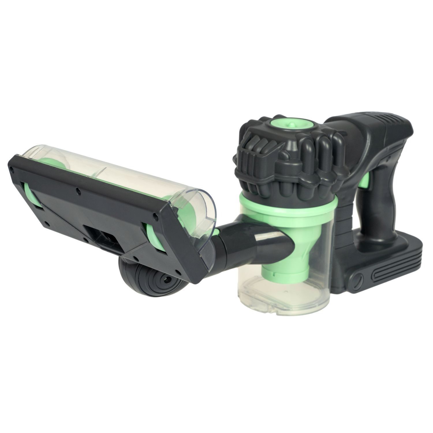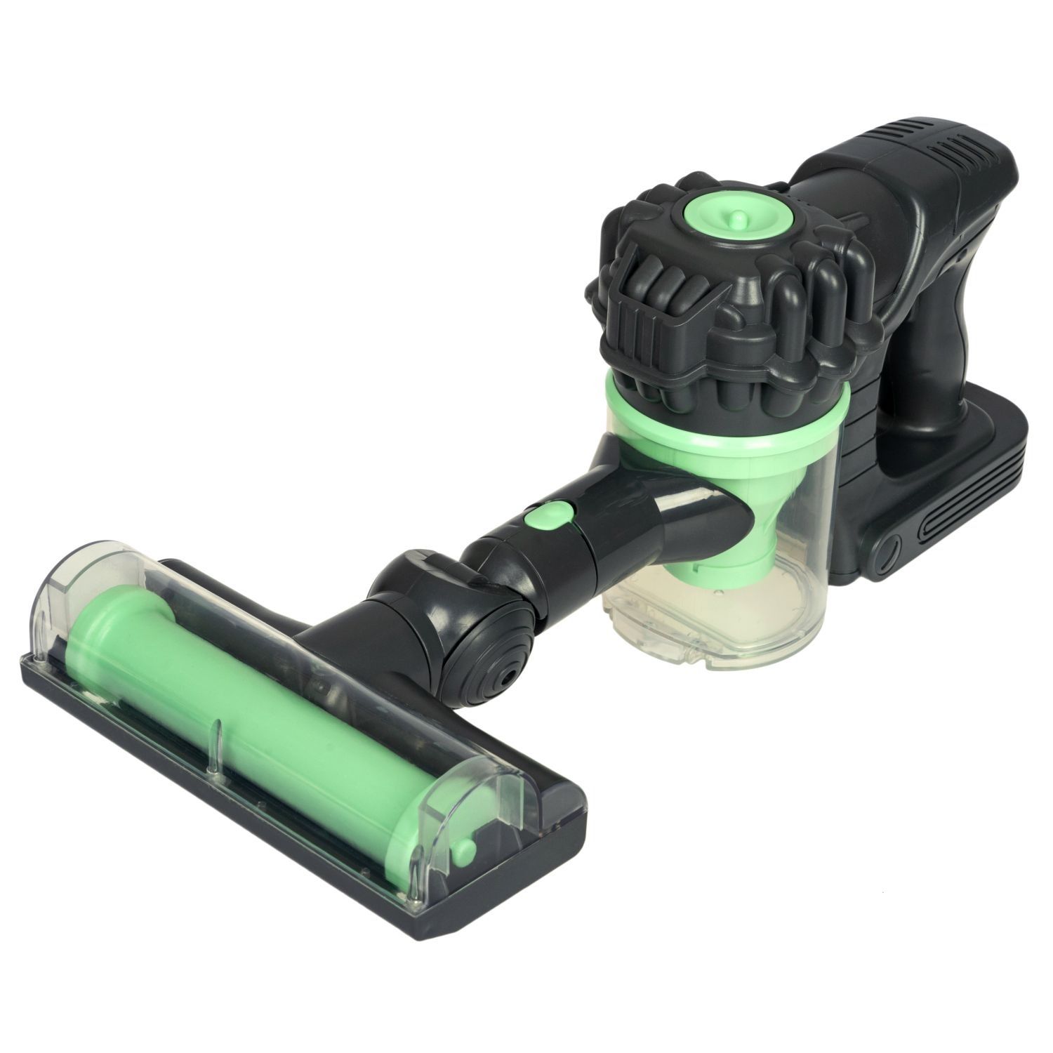 - реалистичный дизайн: игрушка выполнена в виде вертикального пылесоса с ручкой, корпусом и прозрачной колбой для сбора пыли
