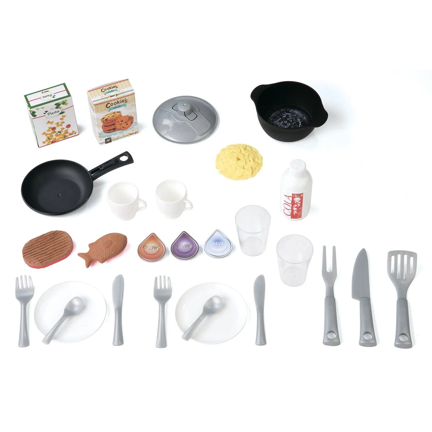 - чтобы игра с кухней была еще более интересной и реалистичной, в наборе предусмотрены разнообразные аксессуары в виде посуды, столовых приборов и прочих необходимых вещей