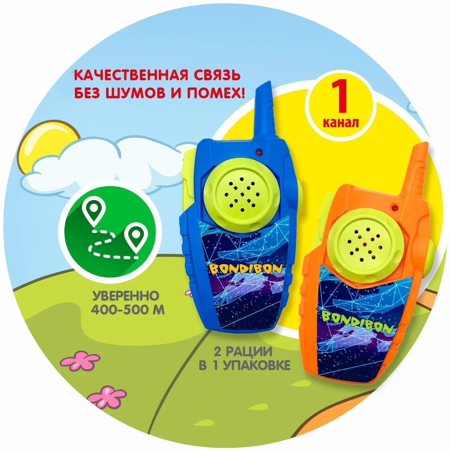 ВВ5461 Набор игровой Рации (2 шт), 1 канал, оранжевая и синяя, дальность 450-500м