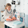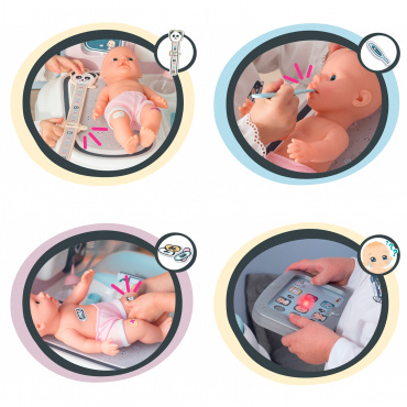 - у стола широкая столешница с весами, съемным планшетом, имитирующим диагностический прибор, вращающимся экраном аппарата ЭКГ и местом для офтальмологического осмотра