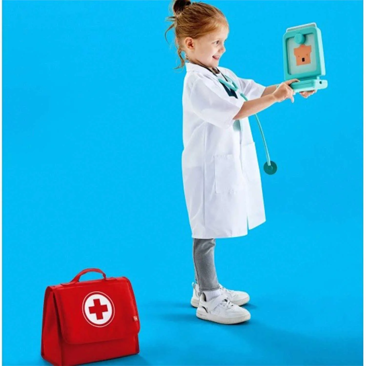 - набор содержит игрушечные копии медицинских приборов: рентгеновский аппарат с проекцией, тонометр, стетоскоп, термометр, отоскоп и другие. Функциональность аксессуаров делает игру максимально приближенной к реальности