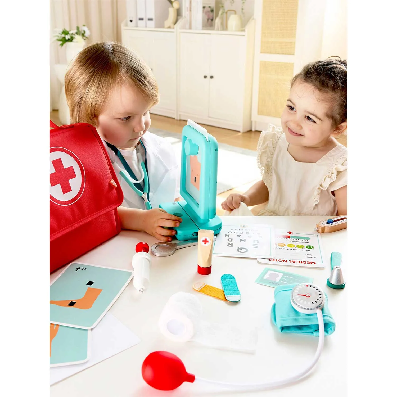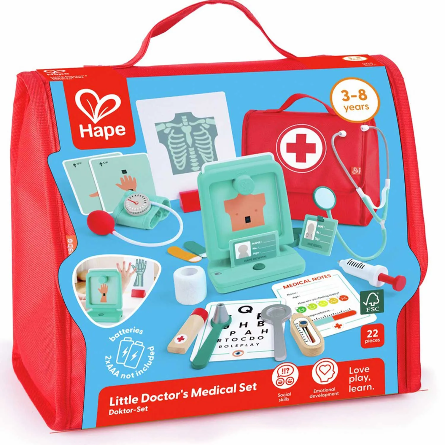 Игровой набор Hape «Добрый Доктор» (E3228_HP) — это яркий и реалистичный медицинский комплект для детей от 3 лет, который превращает игру в увлекательное обучение. Набор помогает ребенку почувствовать себя настоящим врачом, развивает эмпатию, коммуникативные навыки и уверенность в себе.