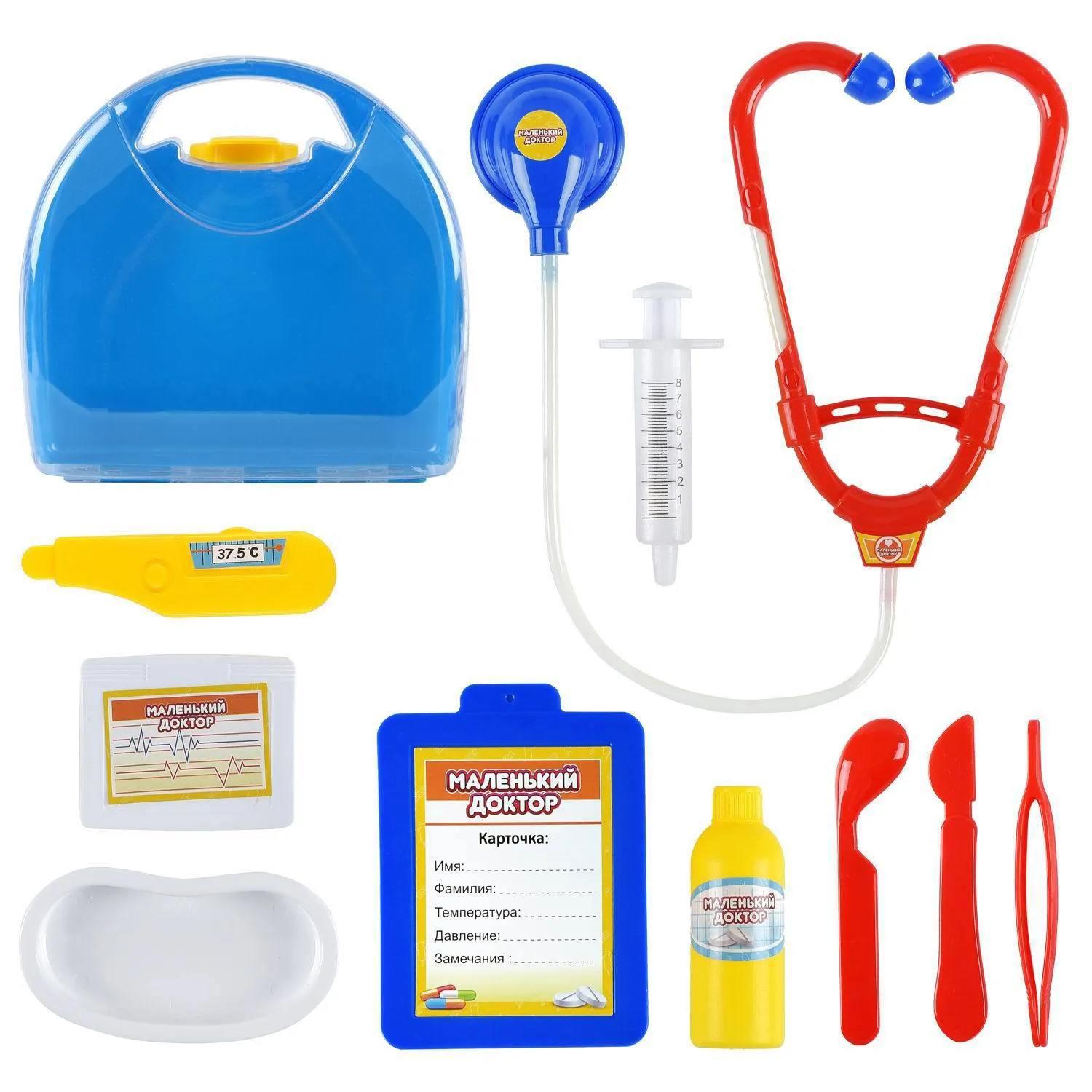 Набор для юных докторов. В удобном чемоданчике есть всё необходимое для того, чтобы открыть собственную клинику и принимать игрушечных пациентов.