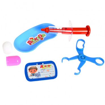 - с игровым набором можно легко вылечить заболевшие игрушки, измерить им температуру или сделать укол