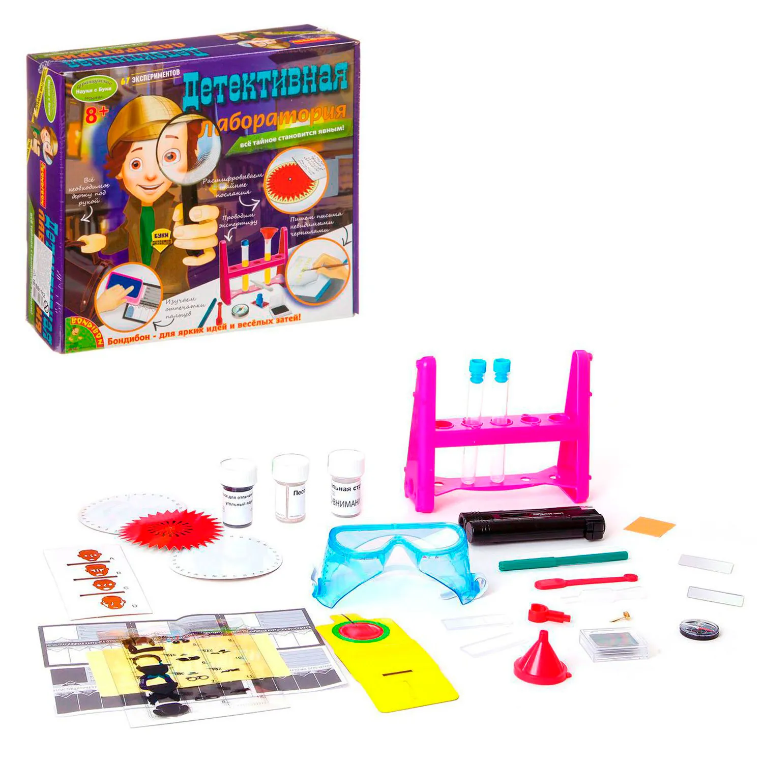 - этому юного сыщика научит научно-познавательный набор Детективная лаборатория, в котором имеются и необходимые инструменты, и рекомендации для проведения полезных экспериментов