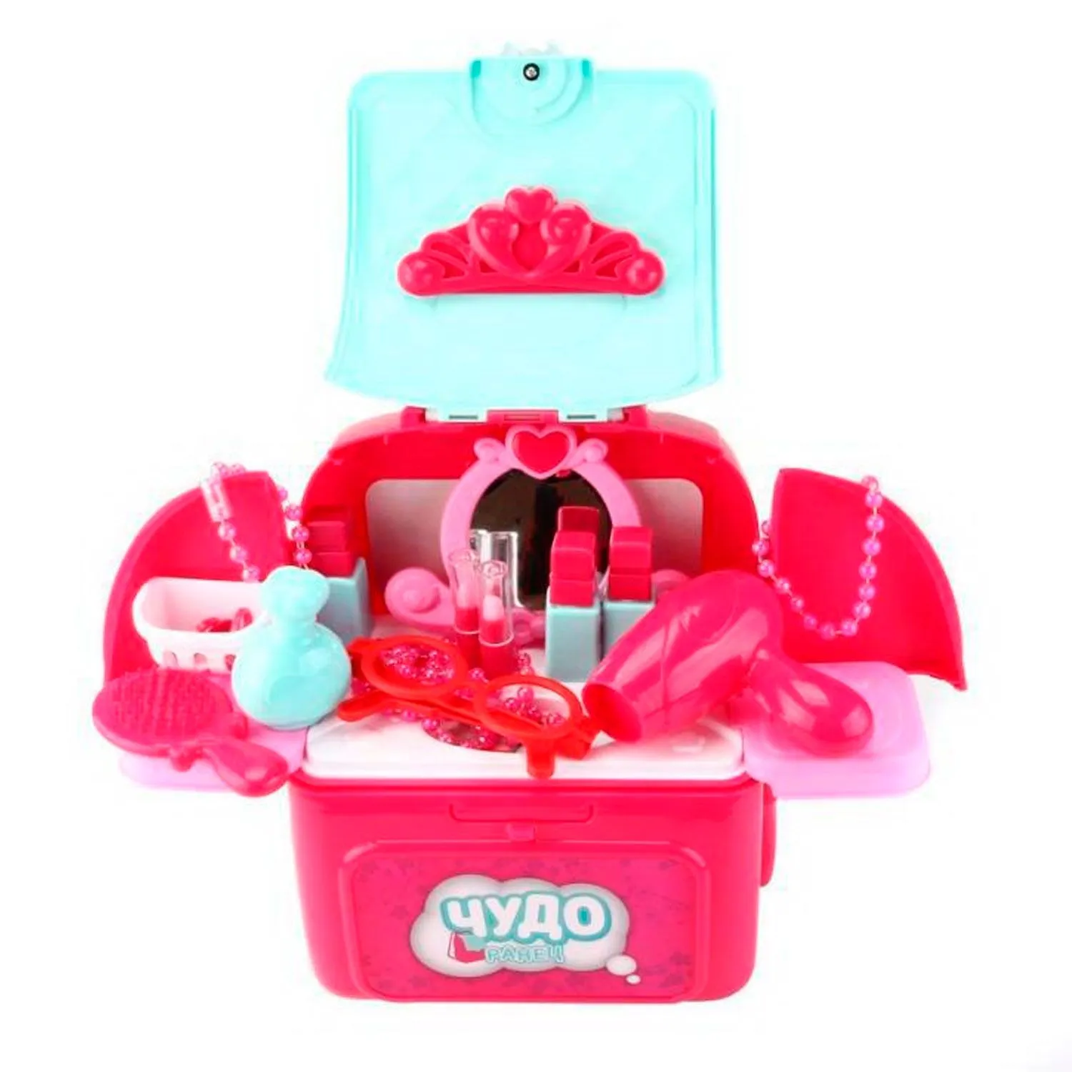 - с помощью дополнительных элементов набора ранец мгновенно преобразуется в туалетный столик