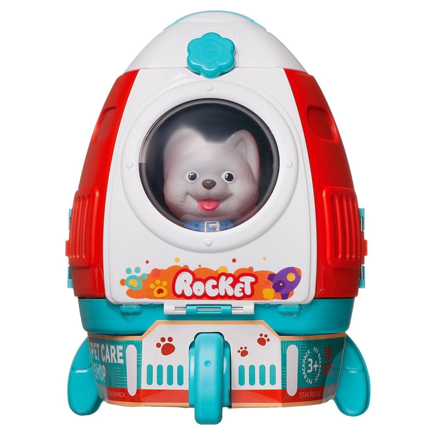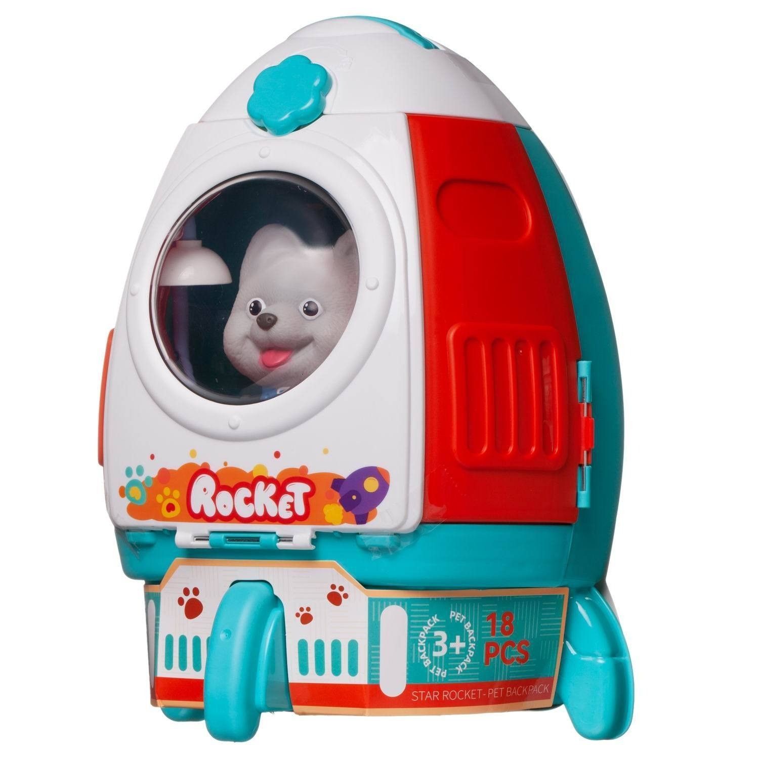 Игровой набор в форме ранца-трансформера от бренда Junfa в виде космической ракеты несомненно понравится всем юным любителя домашних животных и станет отличным подарком.