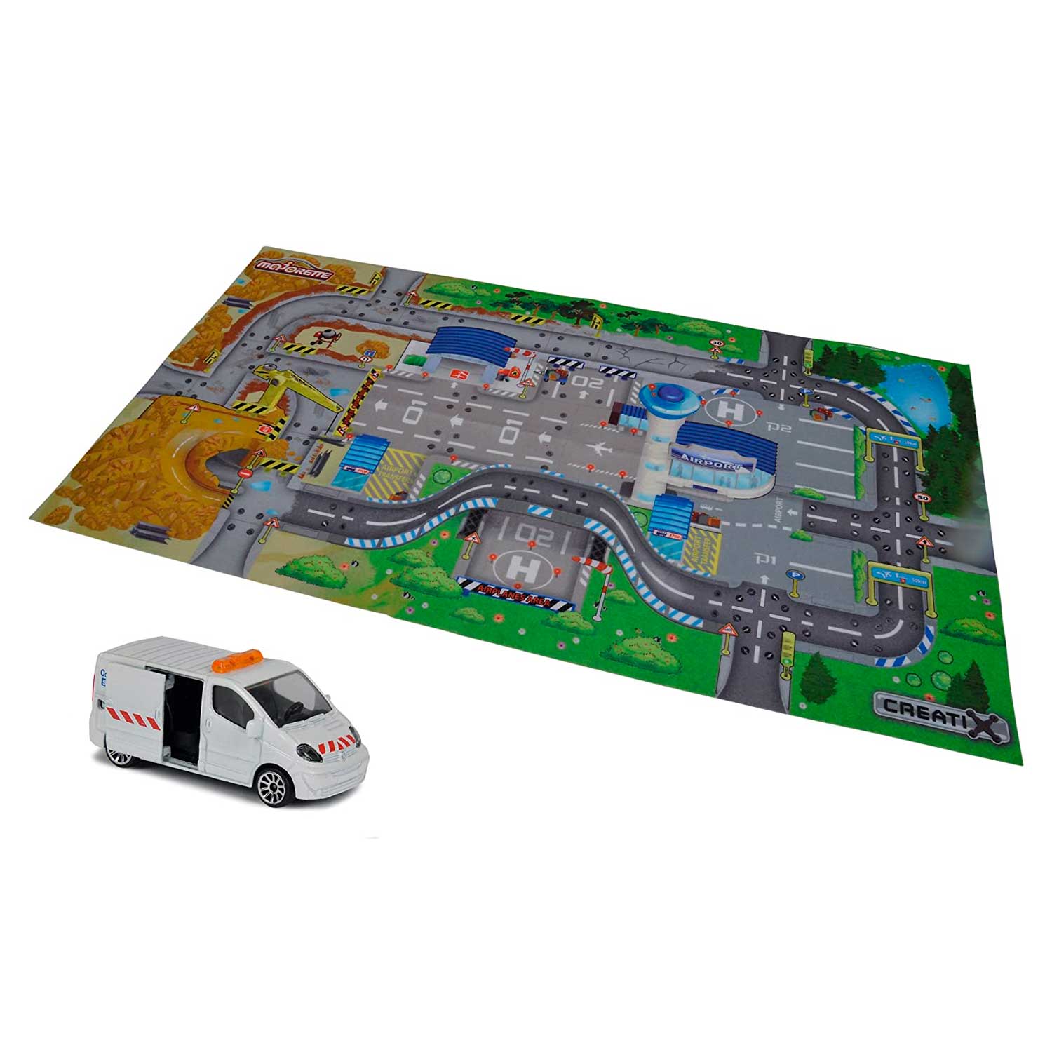 - благодаря этому коврику ребёнок получит миниатюрный вариант участка дороги с небольшой стройплощадкой, посадочным местом для вертолета и остановкой для автобусов