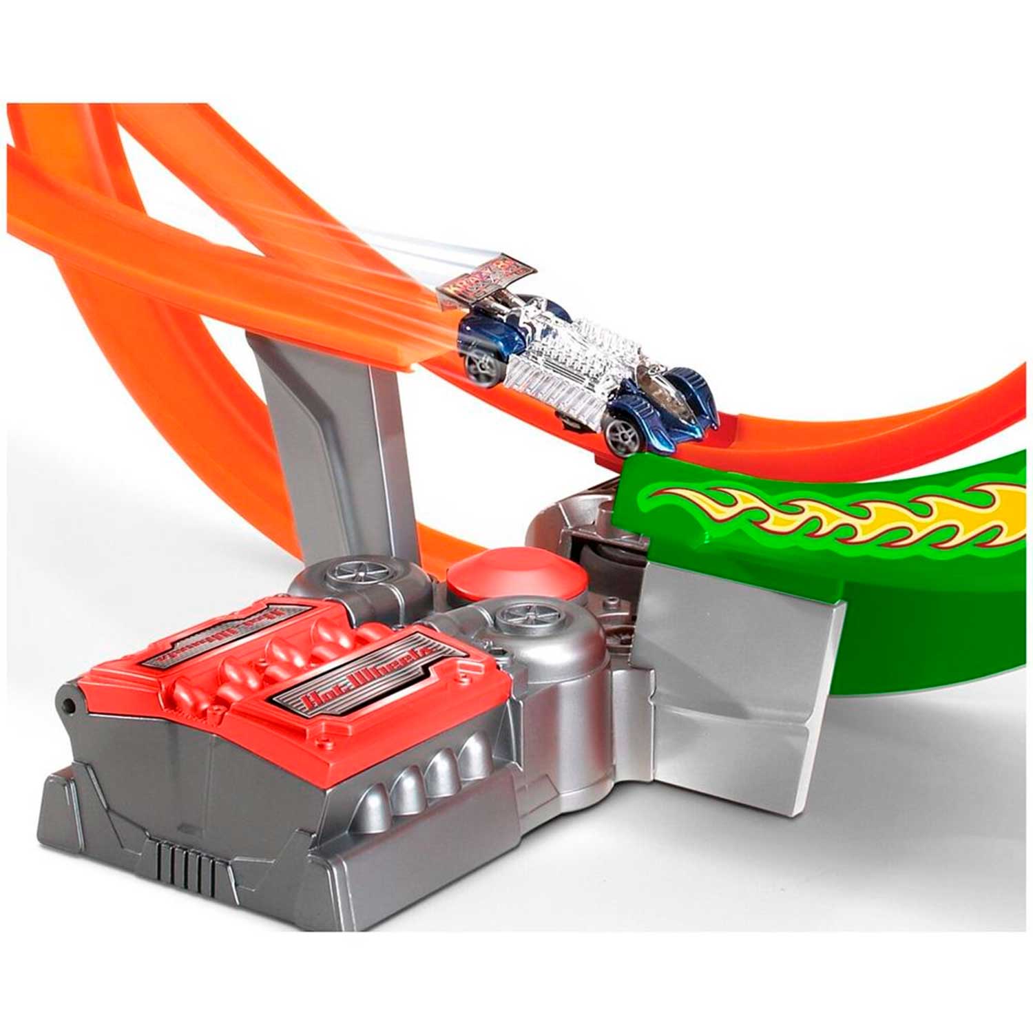 - набор сочетает яркий дизайн, моторизованный ускоритель и петлю, позволяя устраивать экстремальные заезды и зрелищные столкновения