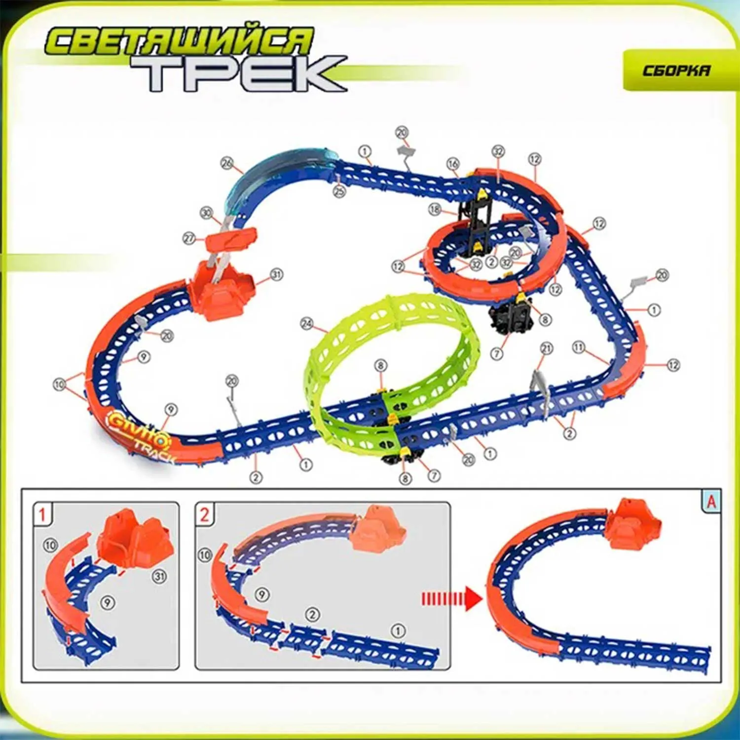 - 53 детали трассы: легко собирается и позволяет создать полноценный маршрут с эффектной неоновой петлёй