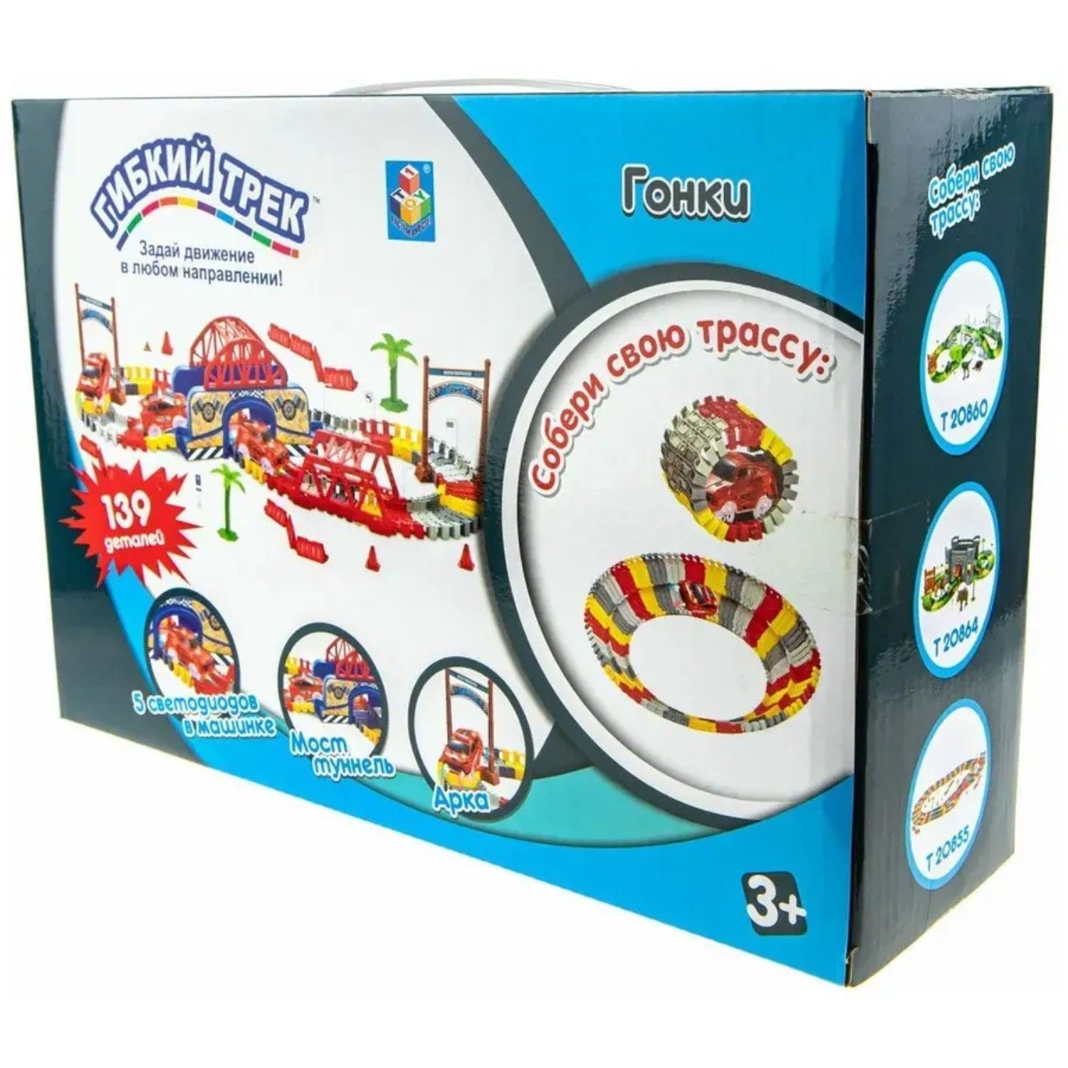 Т20856 Игрушка. Гибкий трек "Гонки" 139 дет, мост-туннель, мост, арка, дор.знаки, машинка, свет
