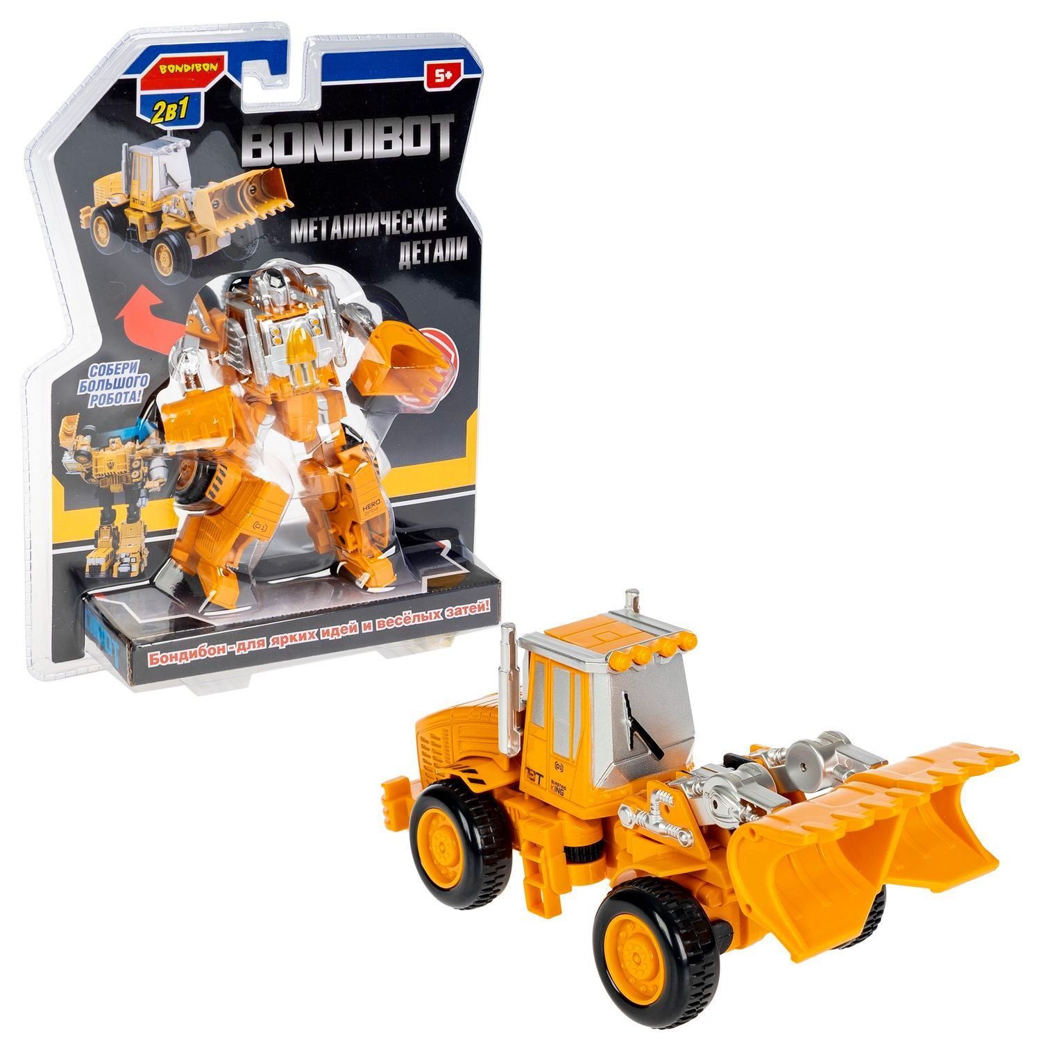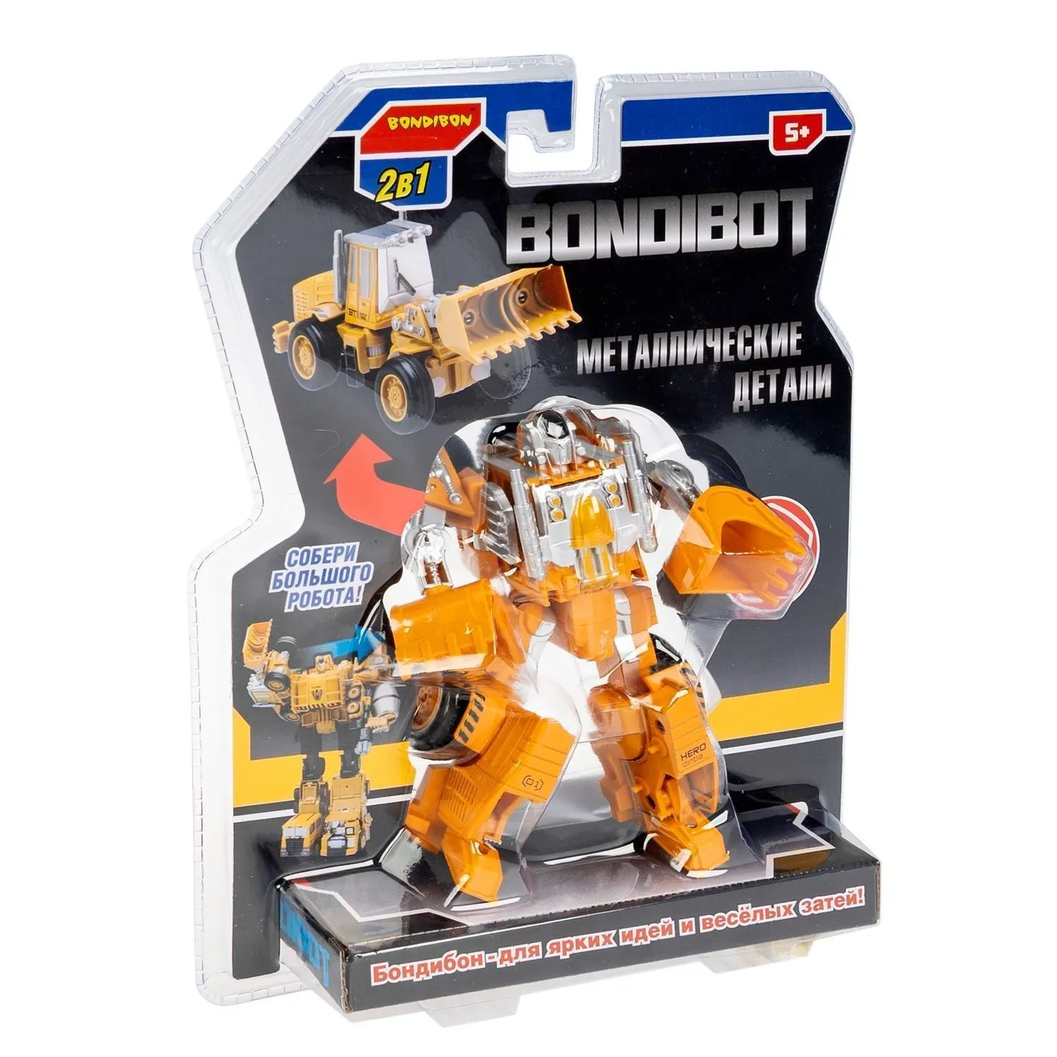 Желтый трансформер экскаватор-погрузчик 2 в 1 серии BONDIBOT от Bondibon непременно порадует маленьких любителей строительной техники.