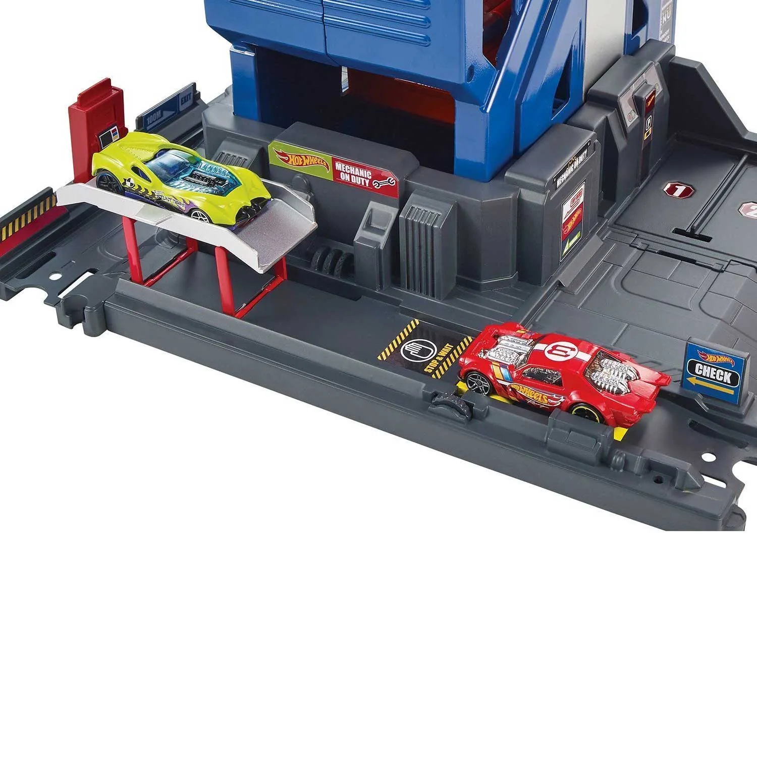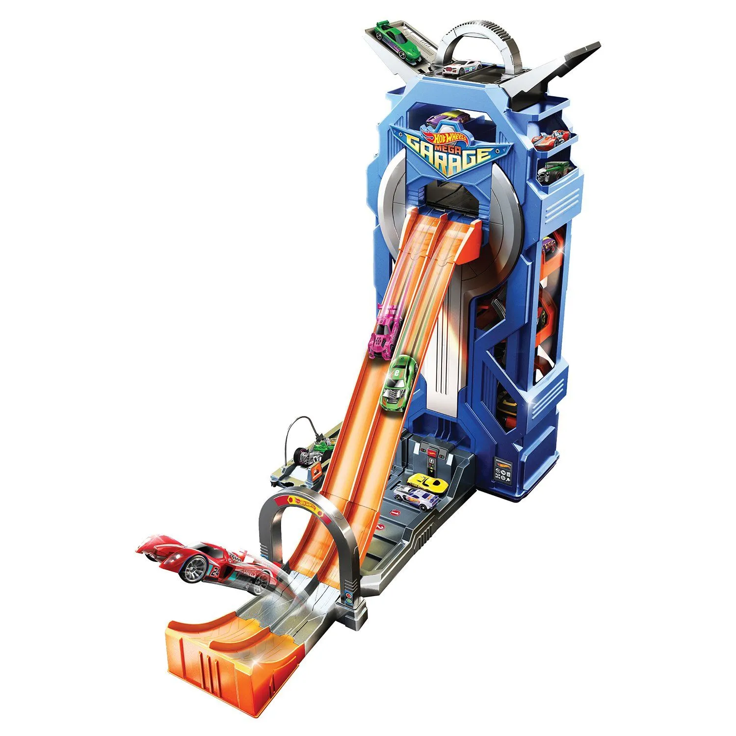 - внутри яркой конструкции есть двухполосный трек с пусковым устройством и различные игровые зоны