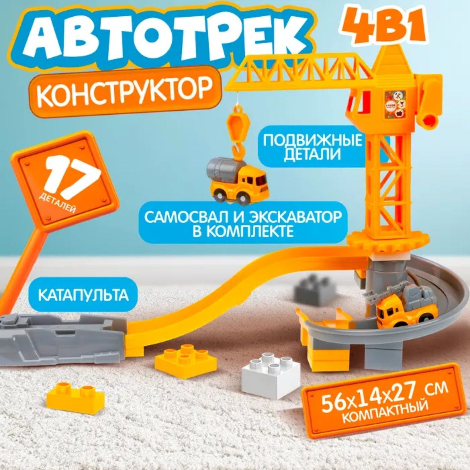 Игровой набор Транспаркинг "Строительный участок"-это компактный автотрек с продуманным функционалом и реалистичными элементами. Парковка подходит для игры дома и на улице - детали легко моются, а элементы набора отлично подходят для игры в песочнице : спецтехника игрушка - самосвал, строительная техника - экскаватор, автокран и дорога для машинок превращают песок в настоящую строительную площадку. Автотрек с трамплином — катапульта позволяет запускать маленькие машинки на скорость и высоту, добавляя динамики и азарта в игру. Катапульта активируется нажатием кнопки — ребёнок может сам управлять запуском машинок . Кран поднимает и перемещает технику с помощью ручки.