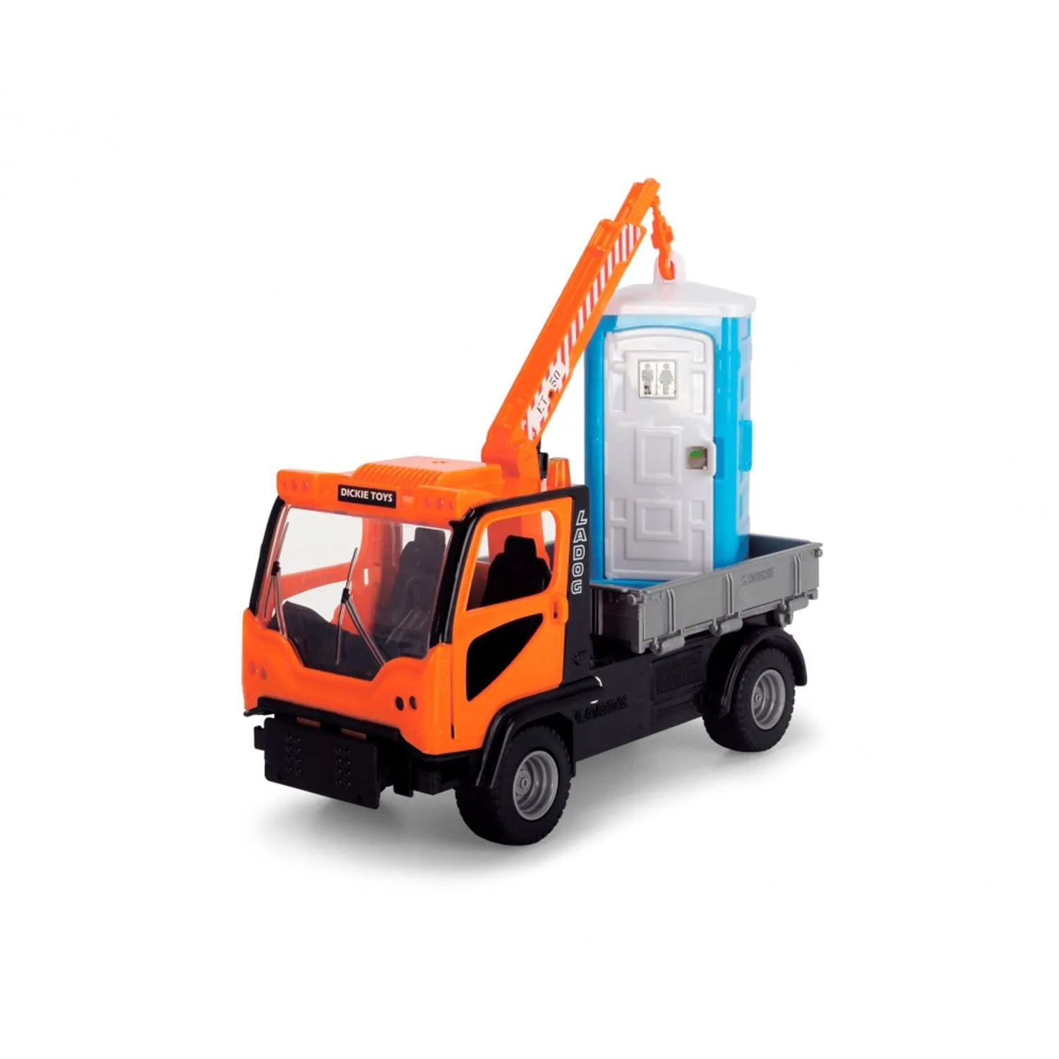 - игровой набор с автокраном, кабинкой с унитазом и фигуркой позволит ребенку представить, как происходит санитарный сервис городского сектора