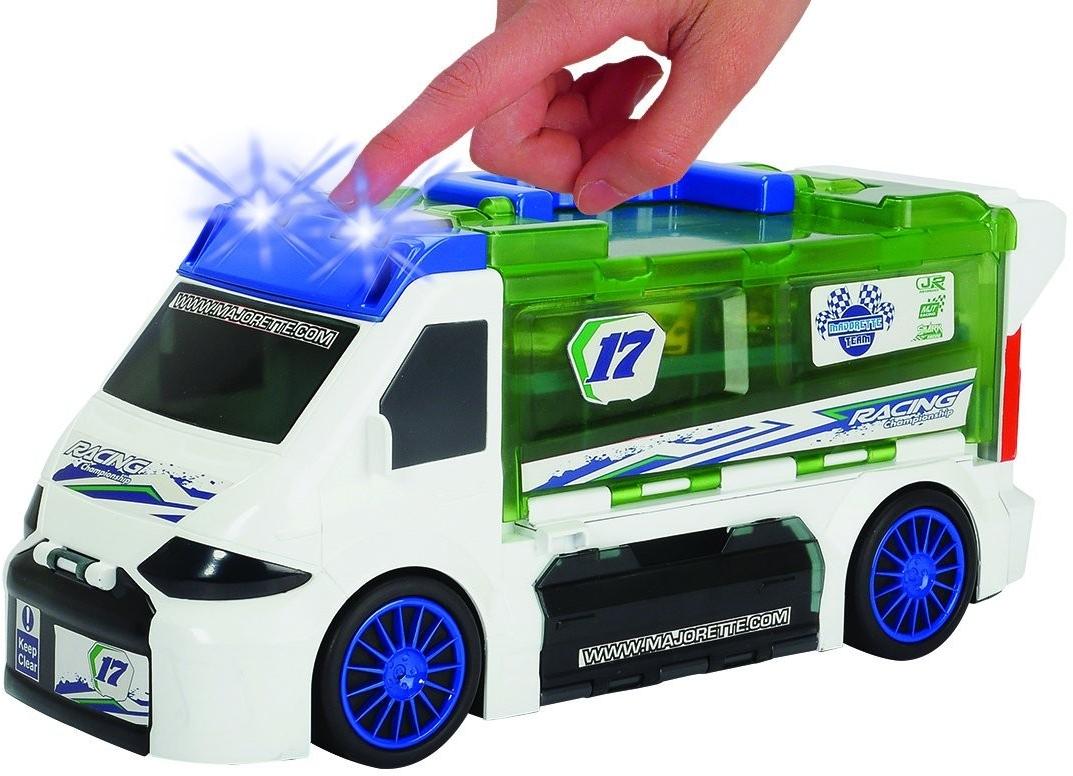Этот ящик для хранения в виде гоночного транспортера сам по себе является высоко-функциональным транспортным средством, в котором можно аккуратно разместить до 18 автомобилей Majorette 7,5 см.