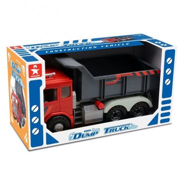 - внутри самосвала установлен фрикционный механизм (инерционный механизм разгона): толкните машину вперед, и она поедет, издавая звуки работающего двигателя