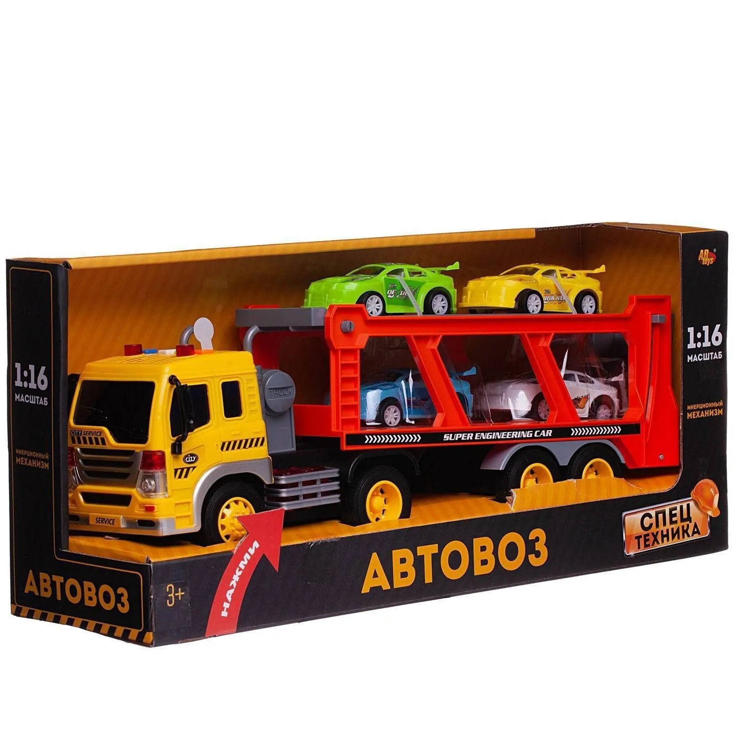 Игровой набор «Автовоз с 4 машинками» из серии «Спецтехника» от бренда Abtoys.