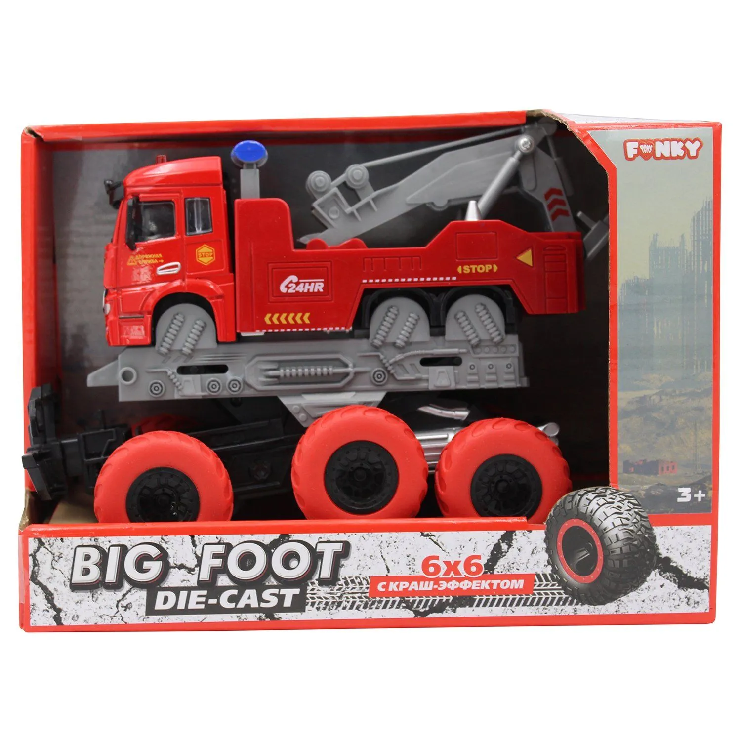 FT61096 Игрушка Дорожная техника с краш-эффектом, кабина die-cast, фрикционная, 6*6, 1:43 Funky toys