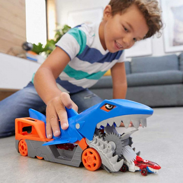 Игровой набор Hot Wheels Грузовик Голодная акула с хранилищем для машинок от Mattel.