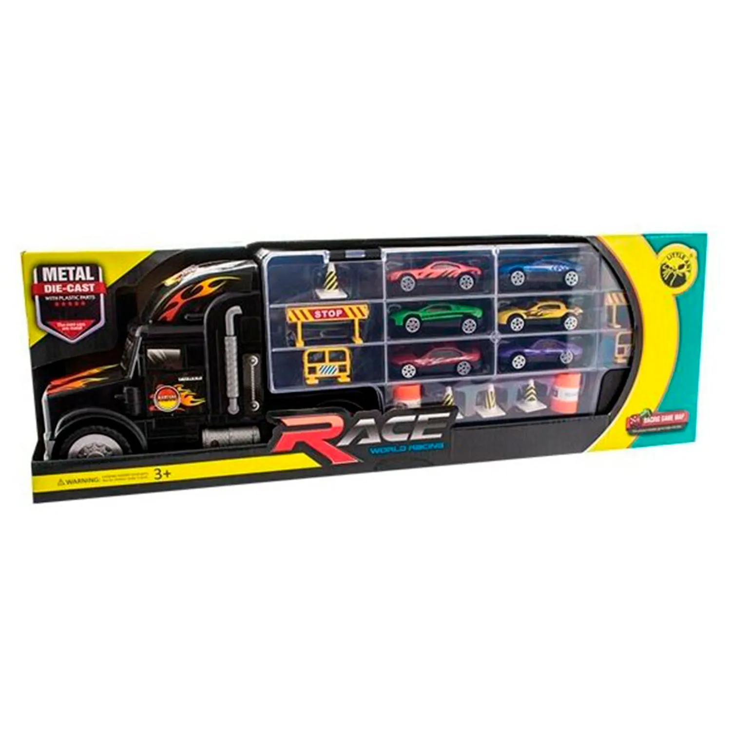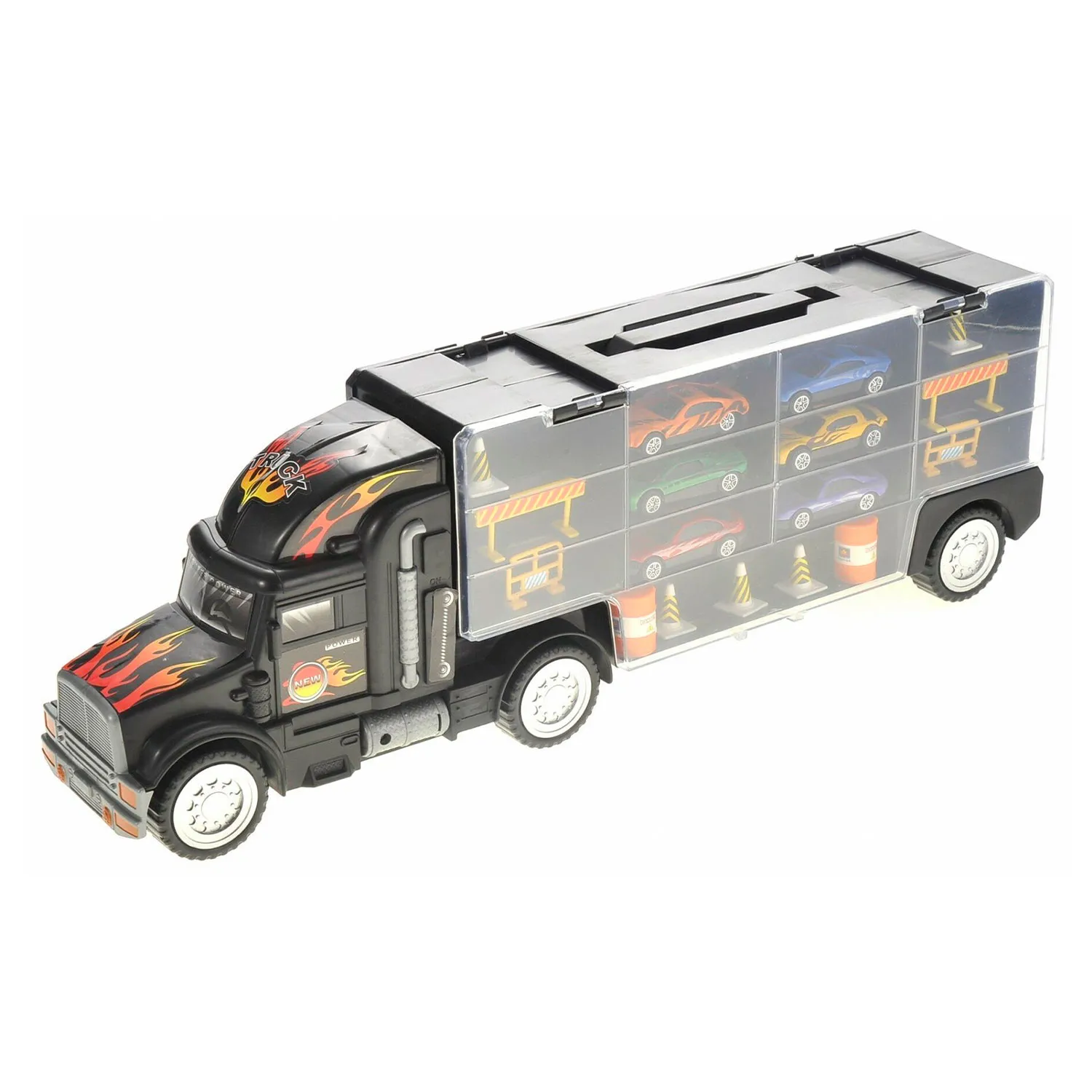 Автовоз с металлическими машинками и дорожными знаками от бренда Junfa Toys.