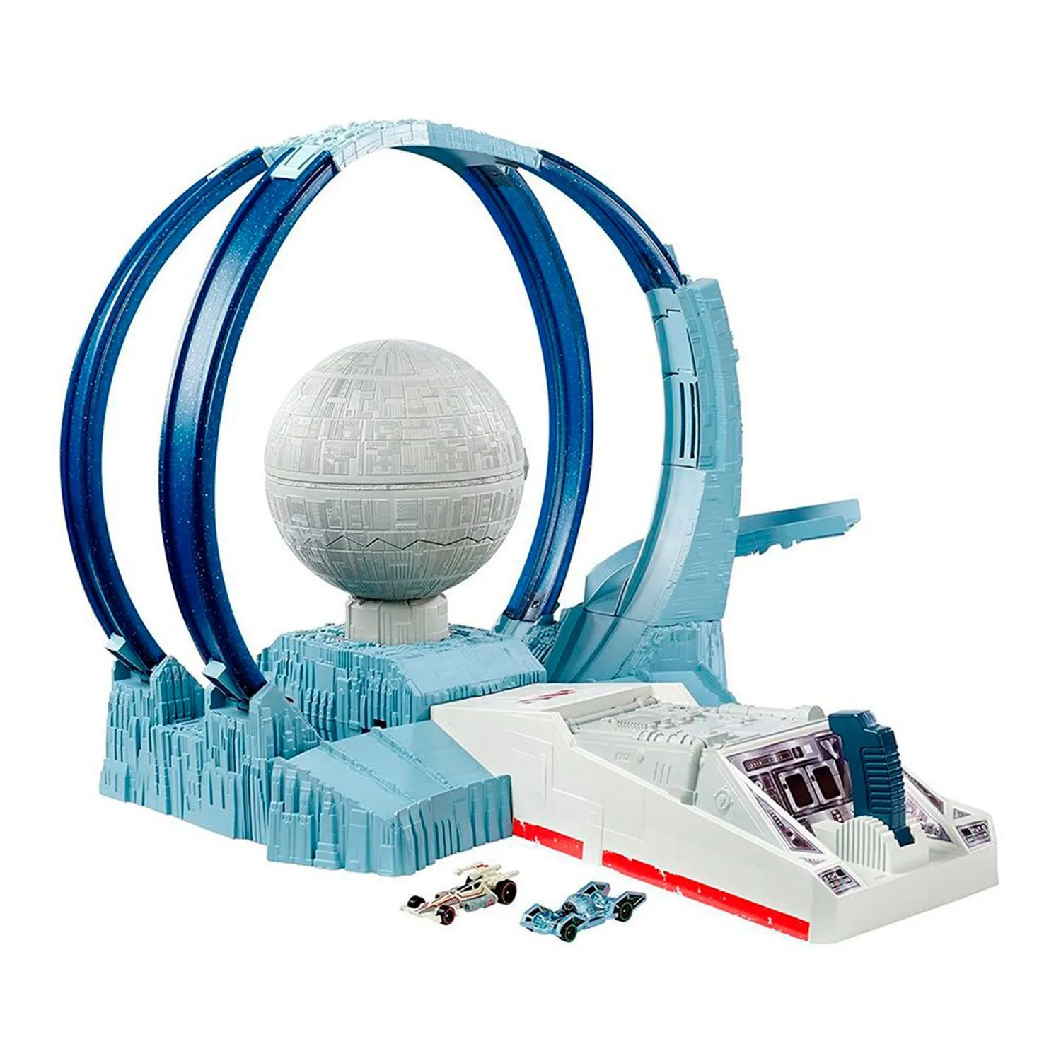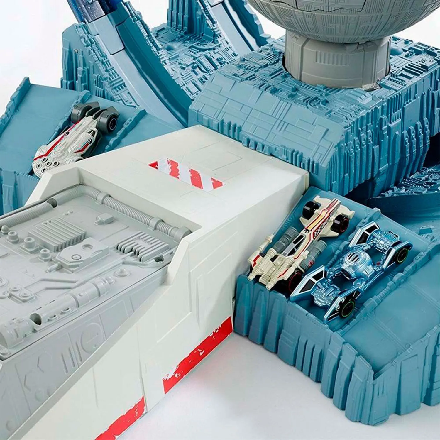 - Звезда Смерти, расположена в центре соединения двух треков, что позволяет кораблям имитировать полет по этим трекам
