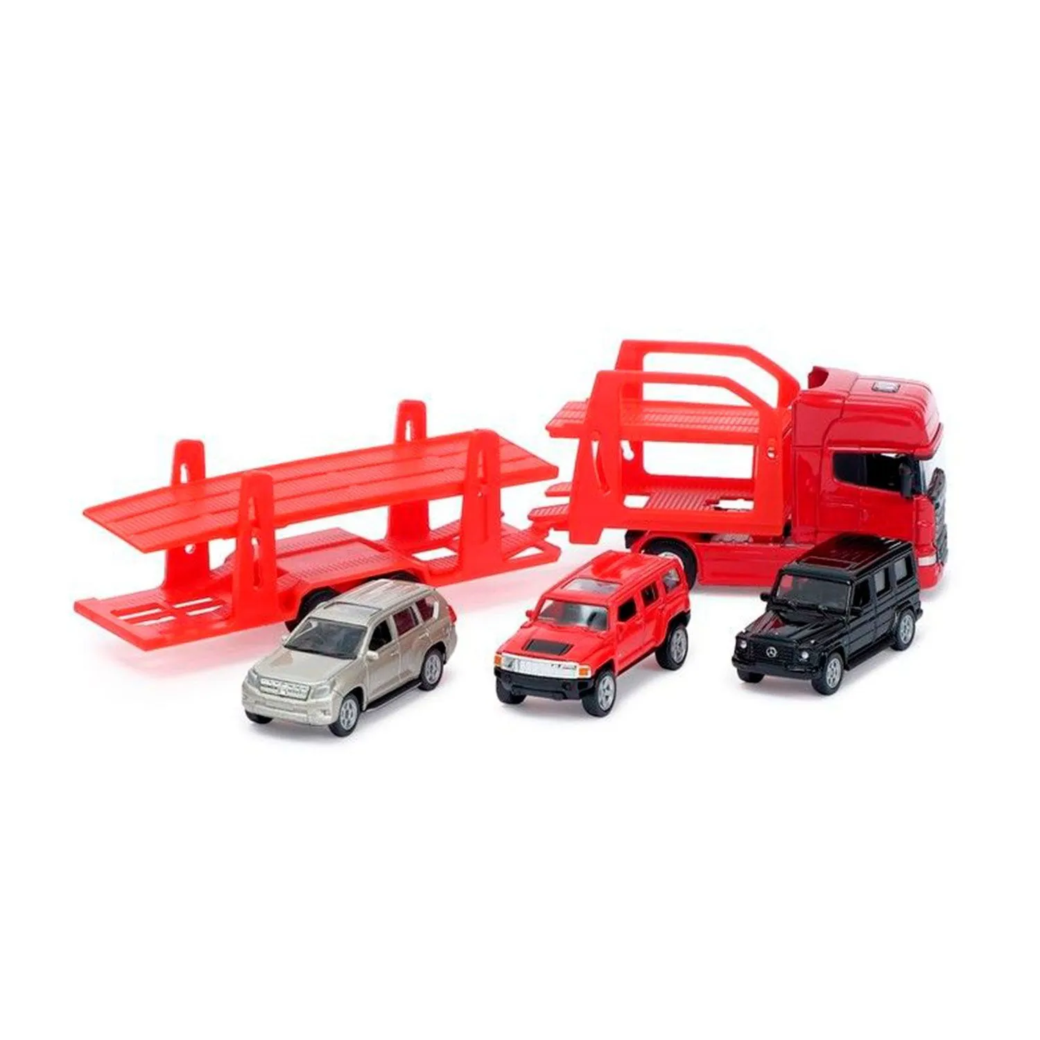 Представляем Вашему вниманию игровой набор с автовозом и тремя высокодетализированными автомобилями от Welly. Все игрушки являются точными копиями реальных машин. Производитель учел все технические характеристики кузовов.