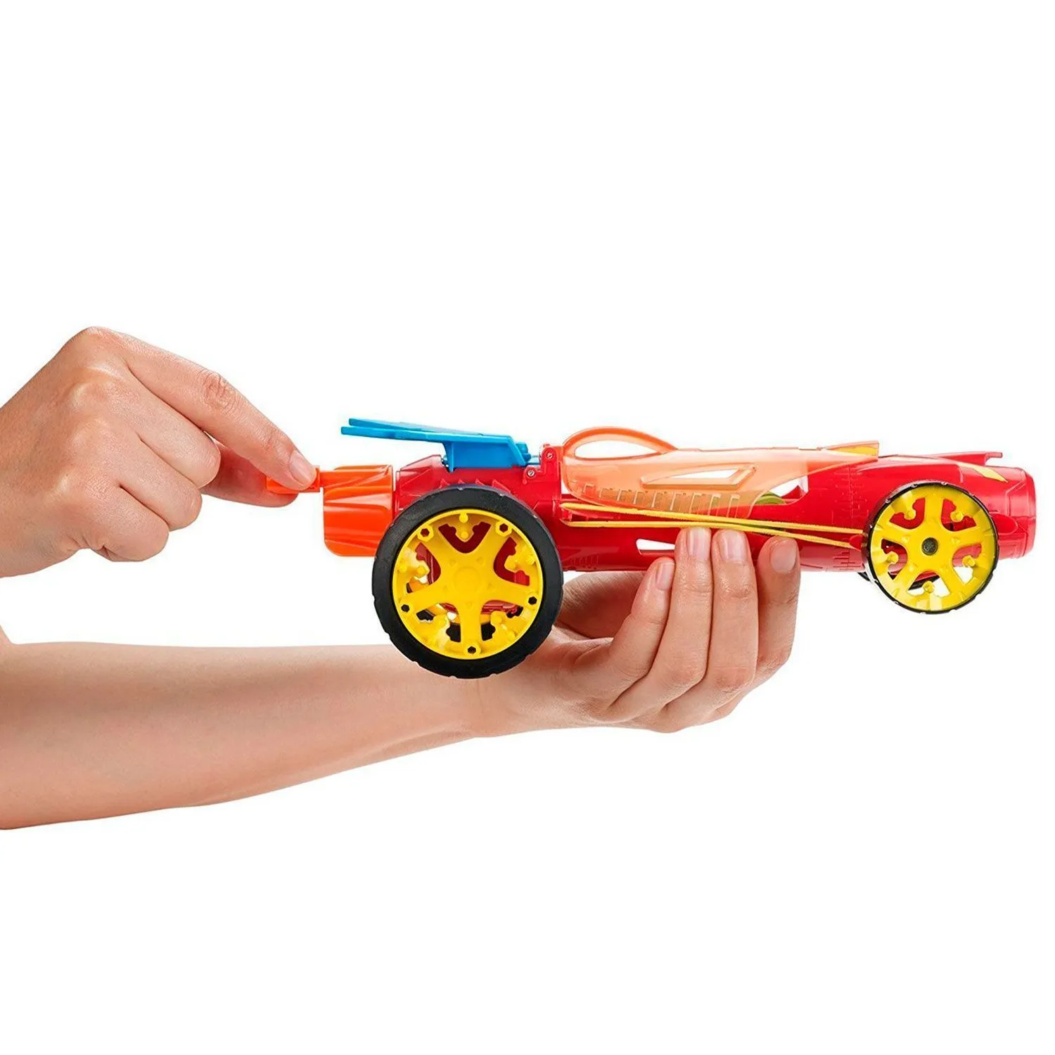 - под крышечкой можно увидеть механизм, на котором есть специальная резиночка, она придает машинке еще большей скорости
