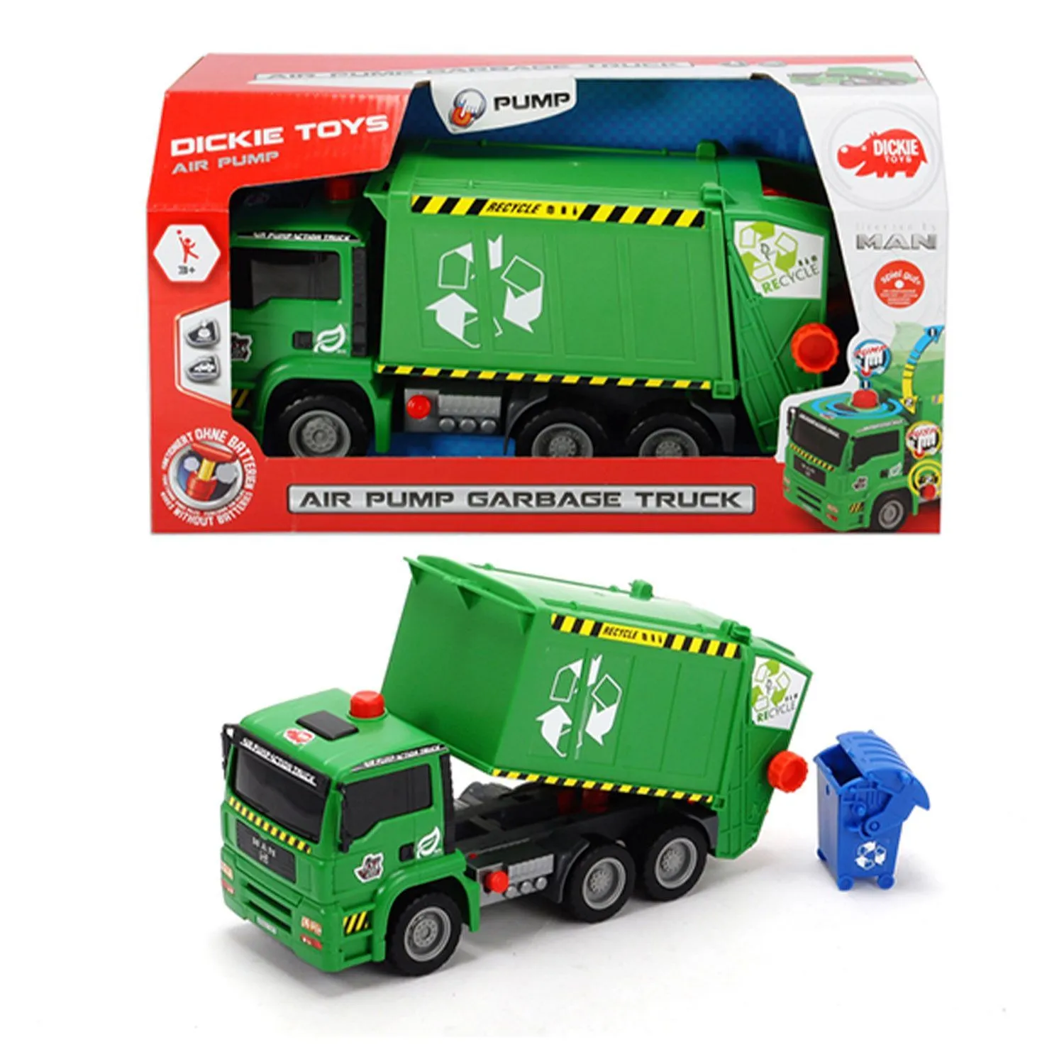 - игрушка обладает функциональным кузовом, который поднимается без использования элементов питания, благодаря функции AirPump, характеризующей наличие встроенного помпового насоса, благодаря которому кузов поднимается простым нажатием на оранжевую кнопку на крыше кабины машиниста