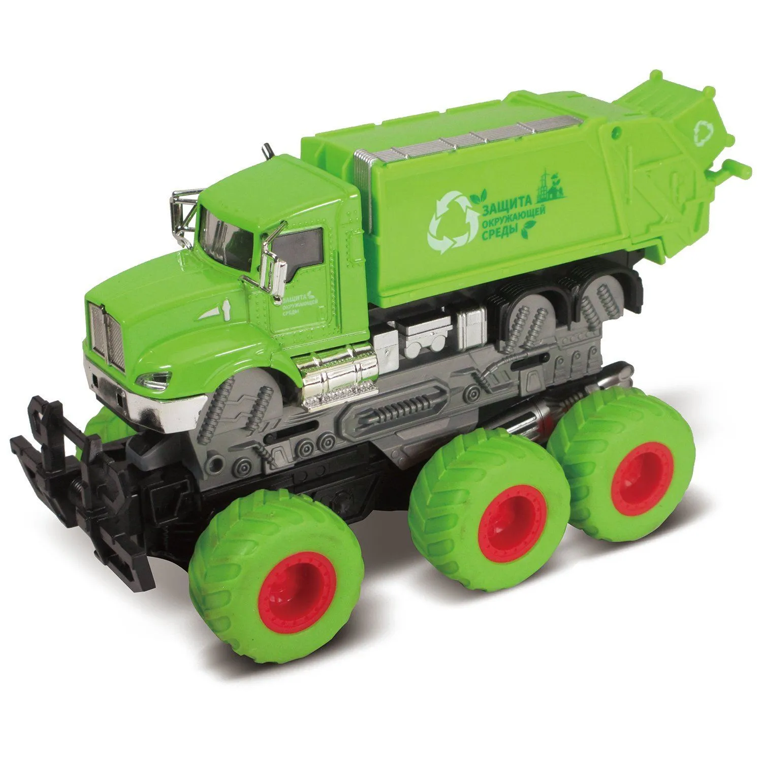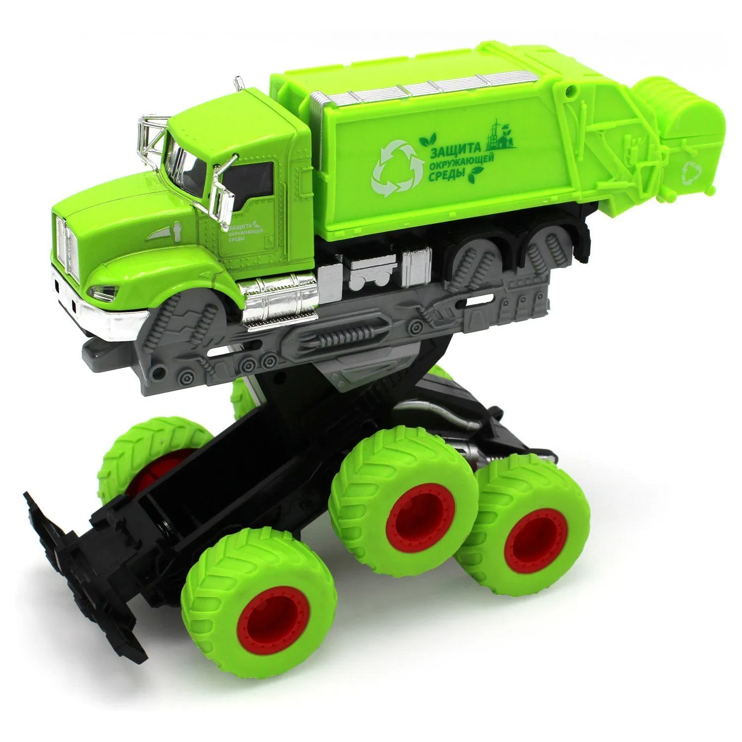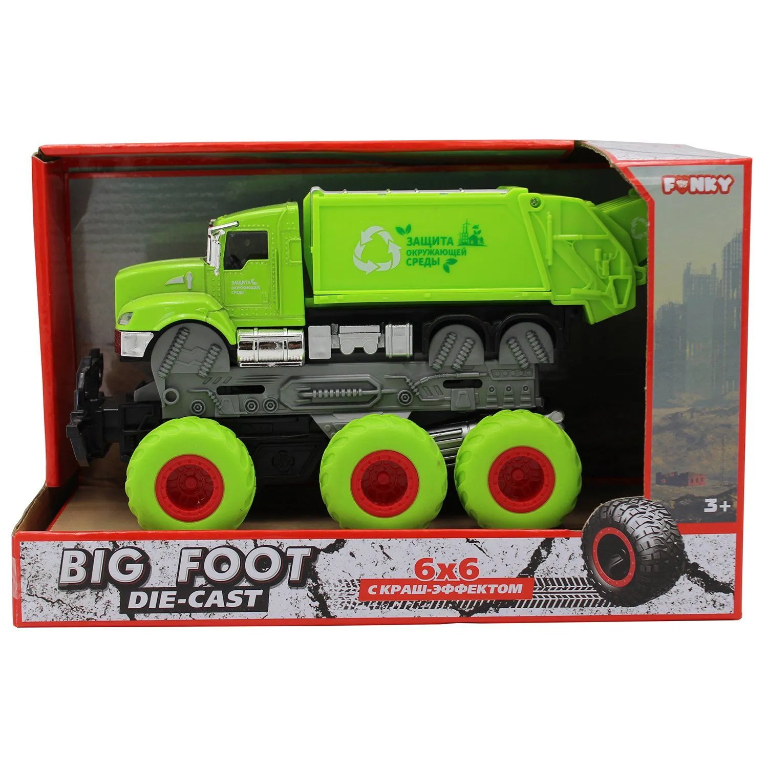 FT61088 Игрушка Мусоровоз с краш-эффектом, кабина die-cast, фрикционный,6*6,зеленый, 1:43 Funky toys