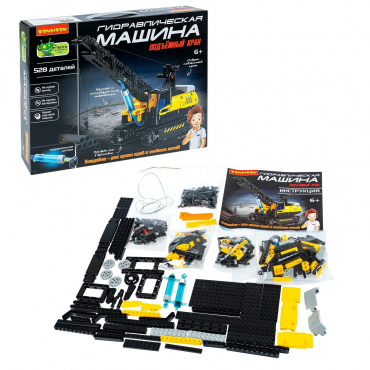 - после сборки ребенок сможет управлять движением крана с использованием гидравлического механизма
