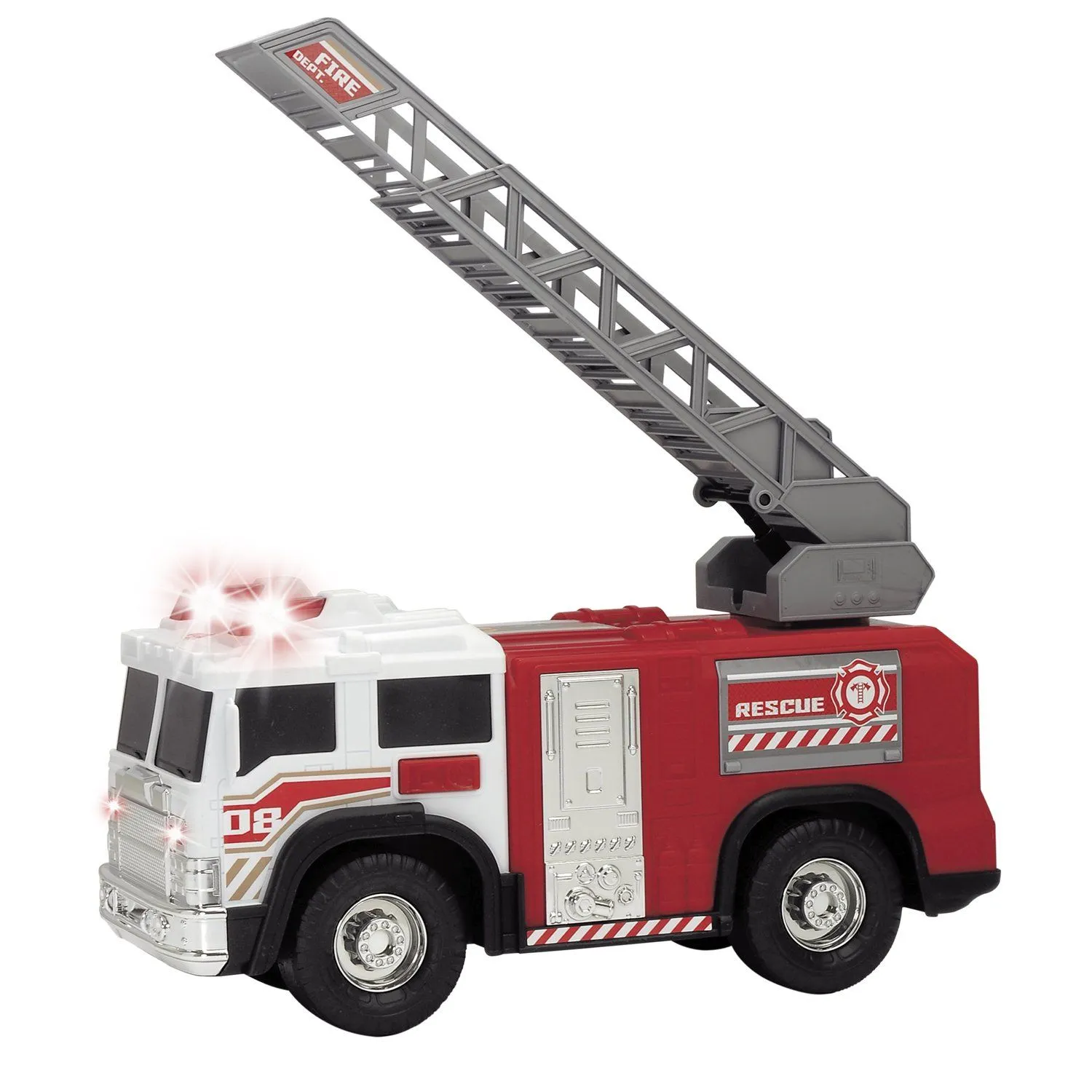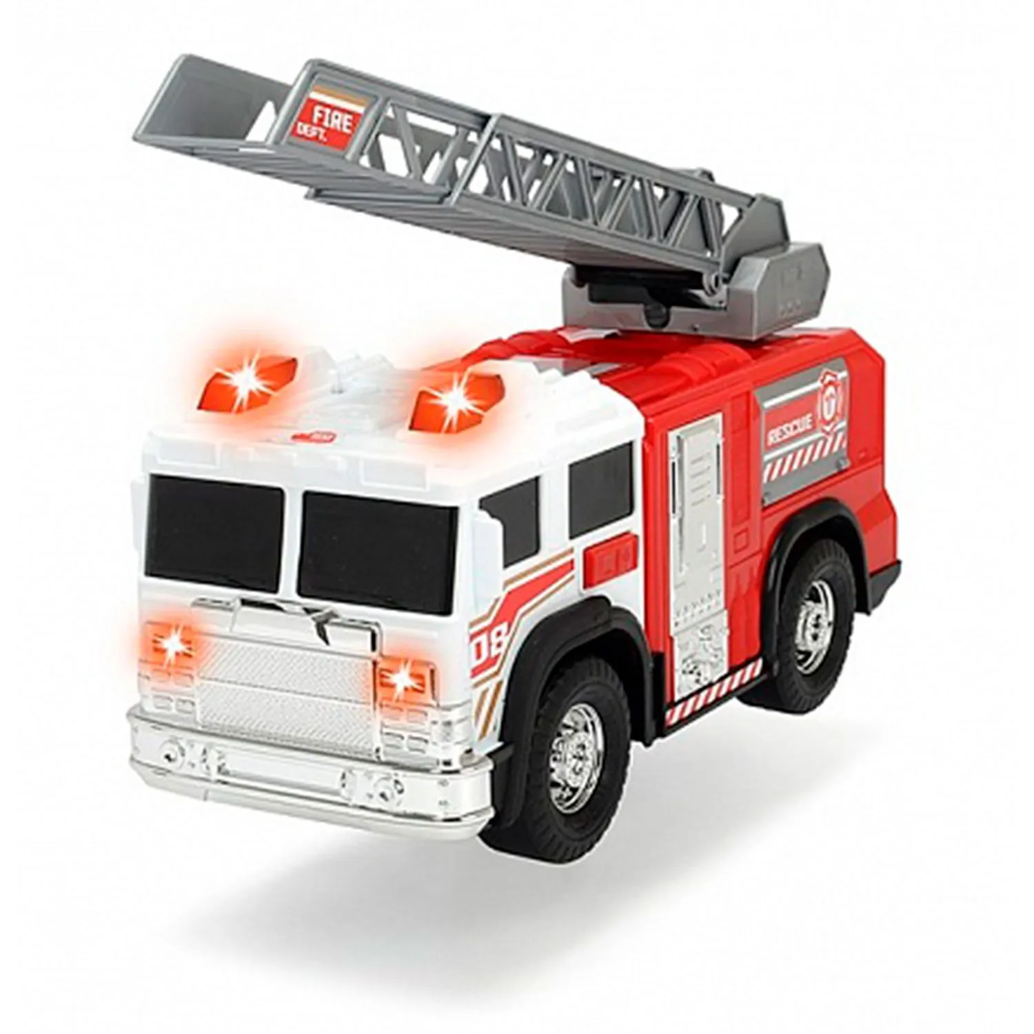 - на корпусе машинки имеется специальная кнопка, которая включает фары, проблесковые маячки и сигнал пожарной сирены