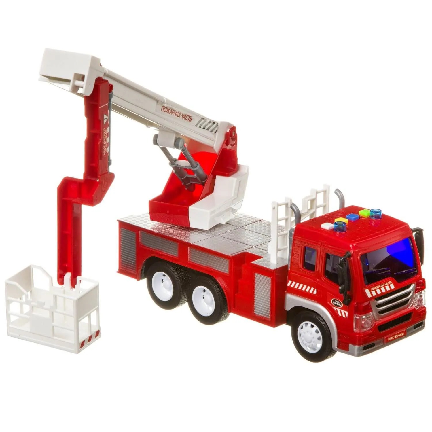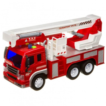 Инерционная пожарная машинка со светом, звуком и подвижными деталями из серии Парк Техники от бренда Bondibon для интересных сюжетно-ролевых игр.