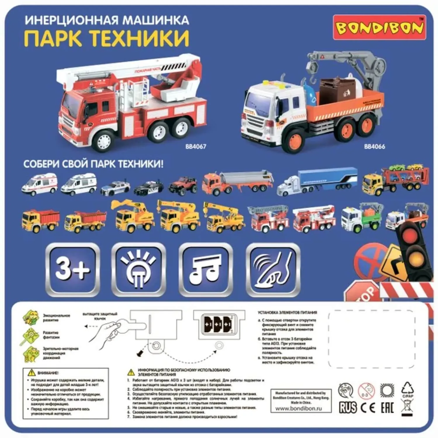 ВВ4067 Инерционная машинка Bondibon «ПАРК ТЕХНИКИ», пожарная машина, свет, звук