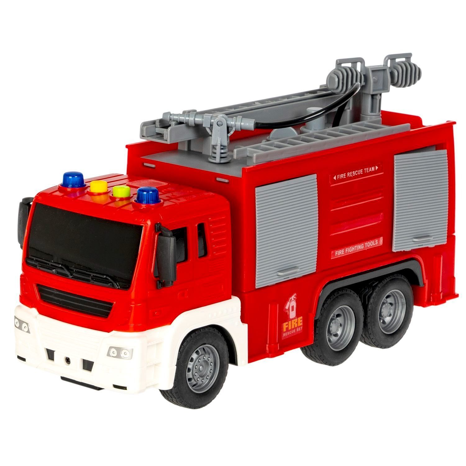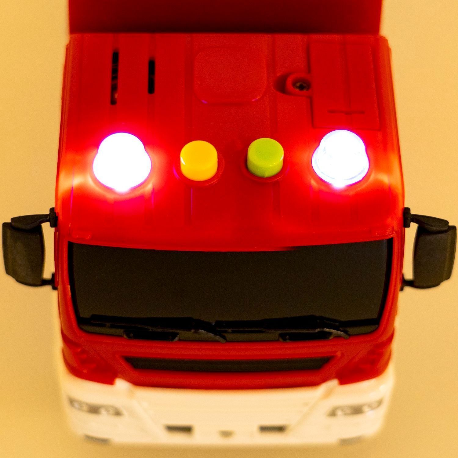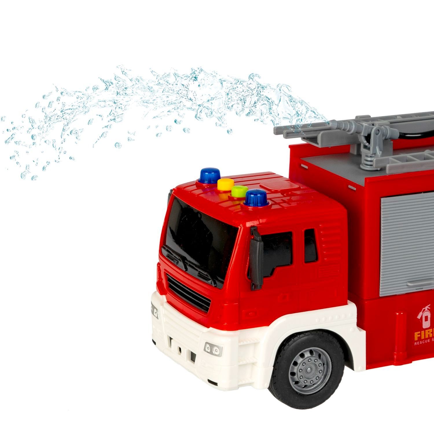 - реалистичный дизайн пожарной техники: ярко-красный корпус, лестница, кабина и элементы, имитирующие оборудование пожарной службы