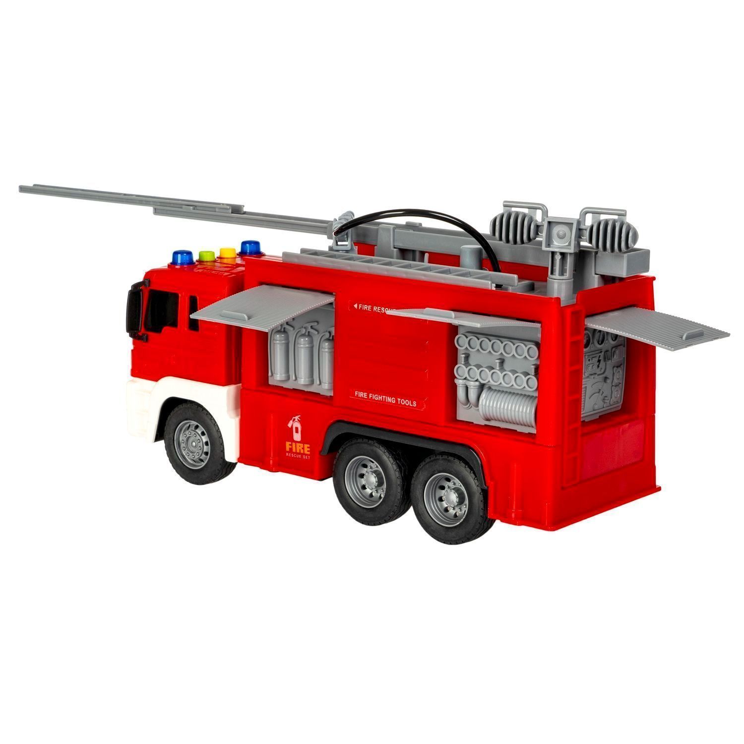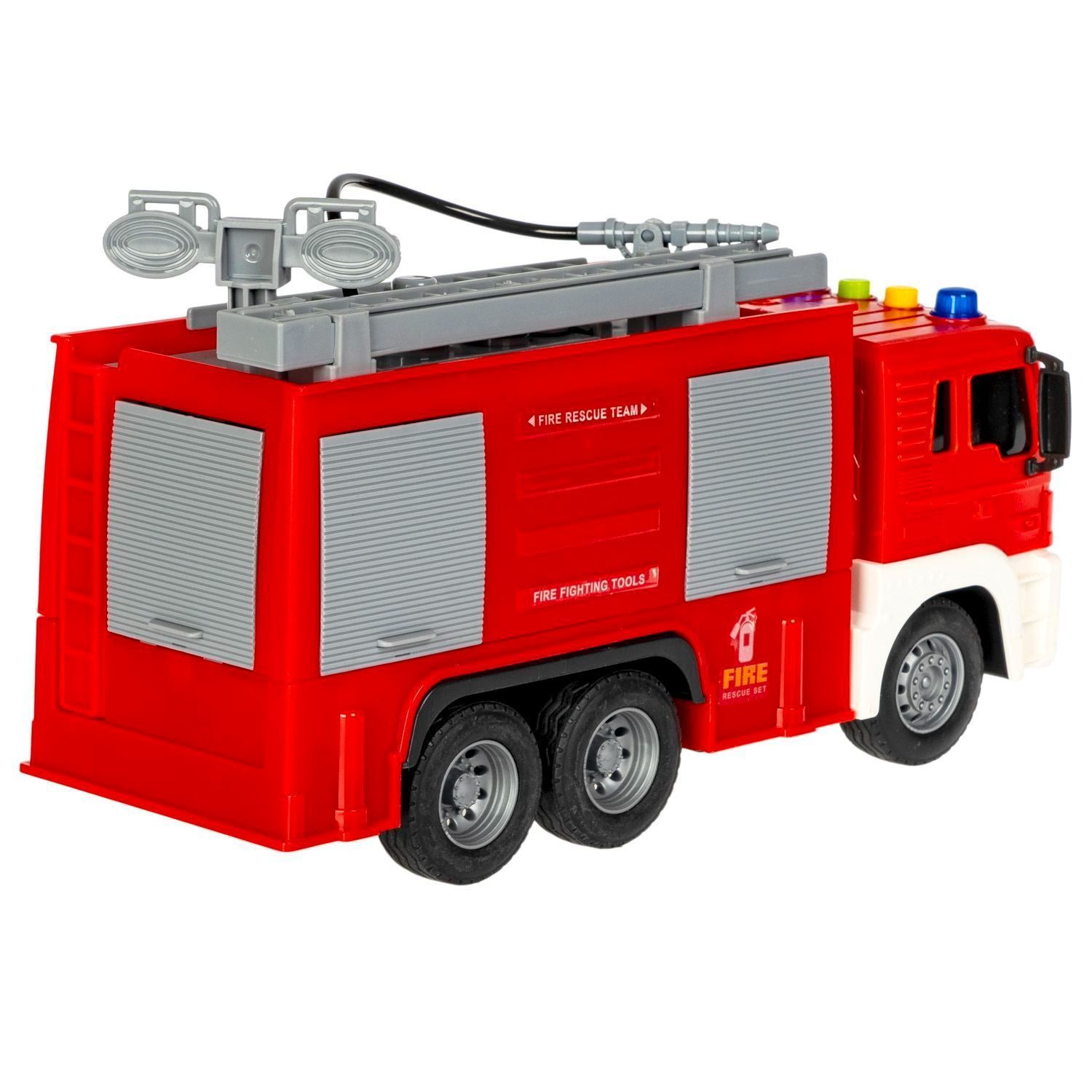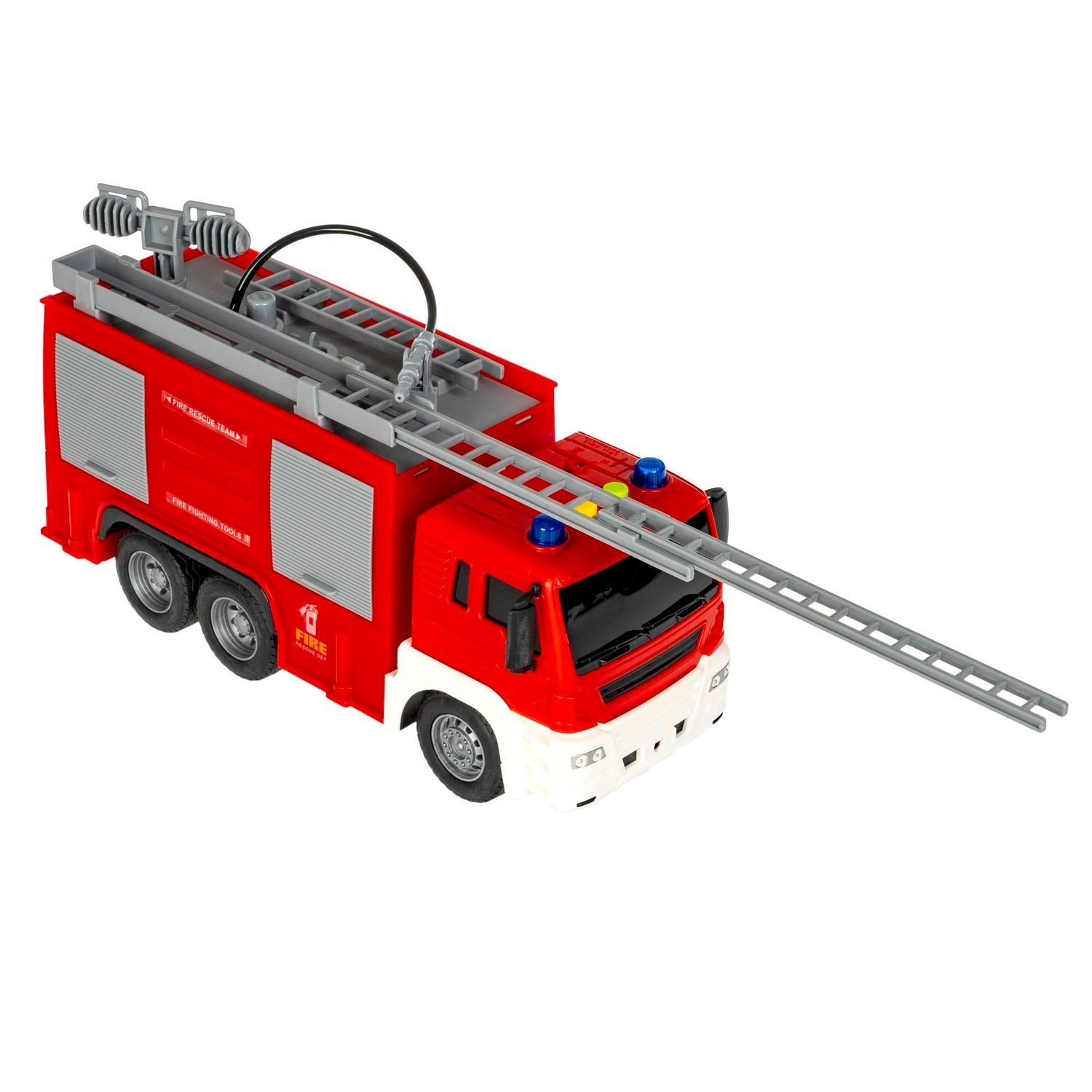 - реалистичный дизайн пожарной техники: ярко-красный корпус, лестница, кабина и элементы, имитирующие оборудование пожарной службы