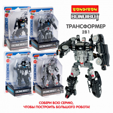- соберите всех роботов данной серии BONDIBOT и сделайте большого робота 5 в 1!