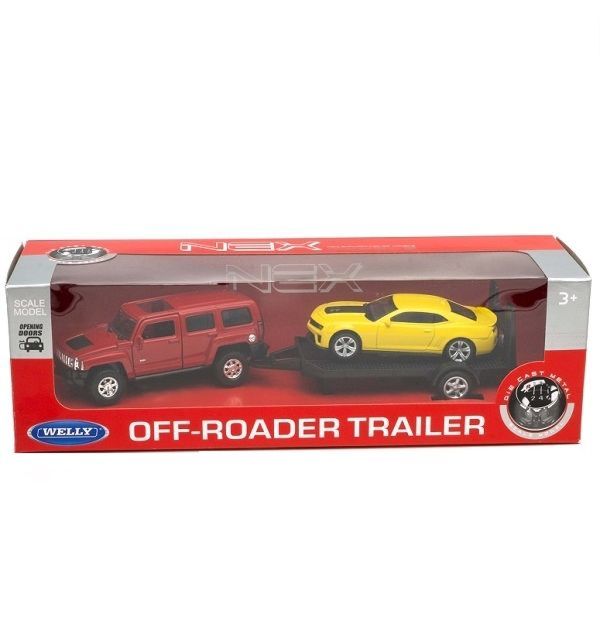 В наборе также представлен прицеп, которой легко присоединяется к заднему бамперу Hummer H3 и вмешает Chevrolet Camaro ZL1. Такой набор сделает игровой процесс более разнообразным и увлекательным. Мальчик сможет придумать огромное количество увлекательных сюжетов.