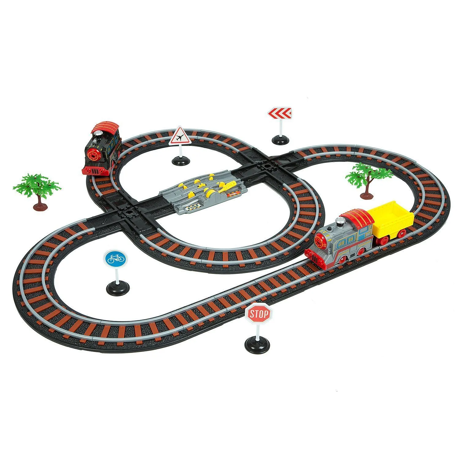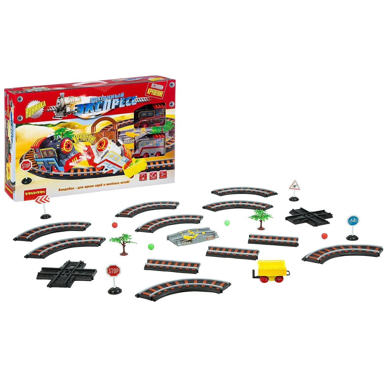 - они позволят ребенку собрать железнодорожный состав, трек с подъемами и переключателями, а также окружающий ландшафт.