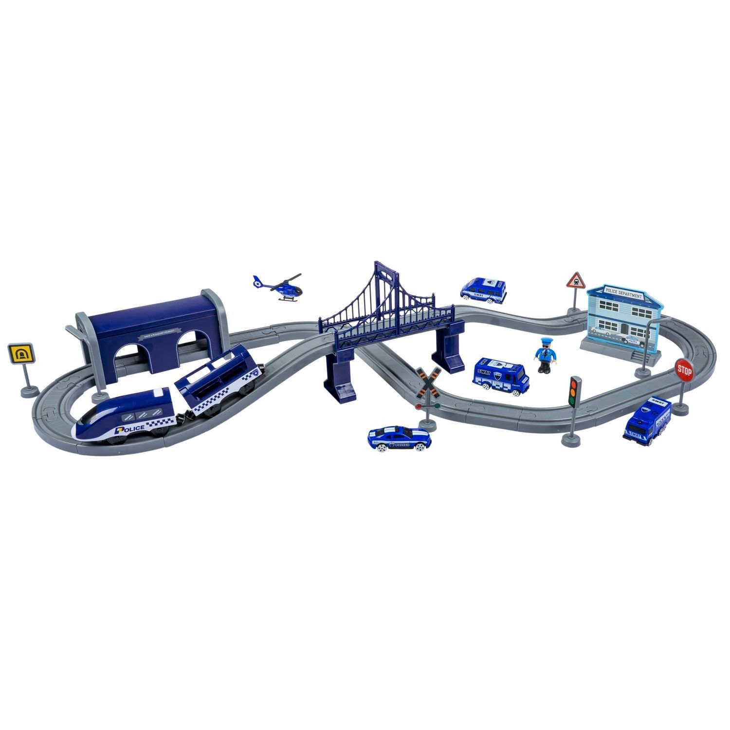 Игровой набор ЖЕЛЕЗНАЯ ДОРОГА ПОЛИЦИЯ от Bondibon (арт. ВВ6075) – это увлекательная игрушка, которая позволит вашему ребенку почувствовать себя настоящим героем, придумывая сюжетно-ролевые игры с техникой полиции. Набор включает поезд на батарейках, тоннель, мост, машины и фигурку человечка, создавая реалистичную и захватывающую игровую среду.
